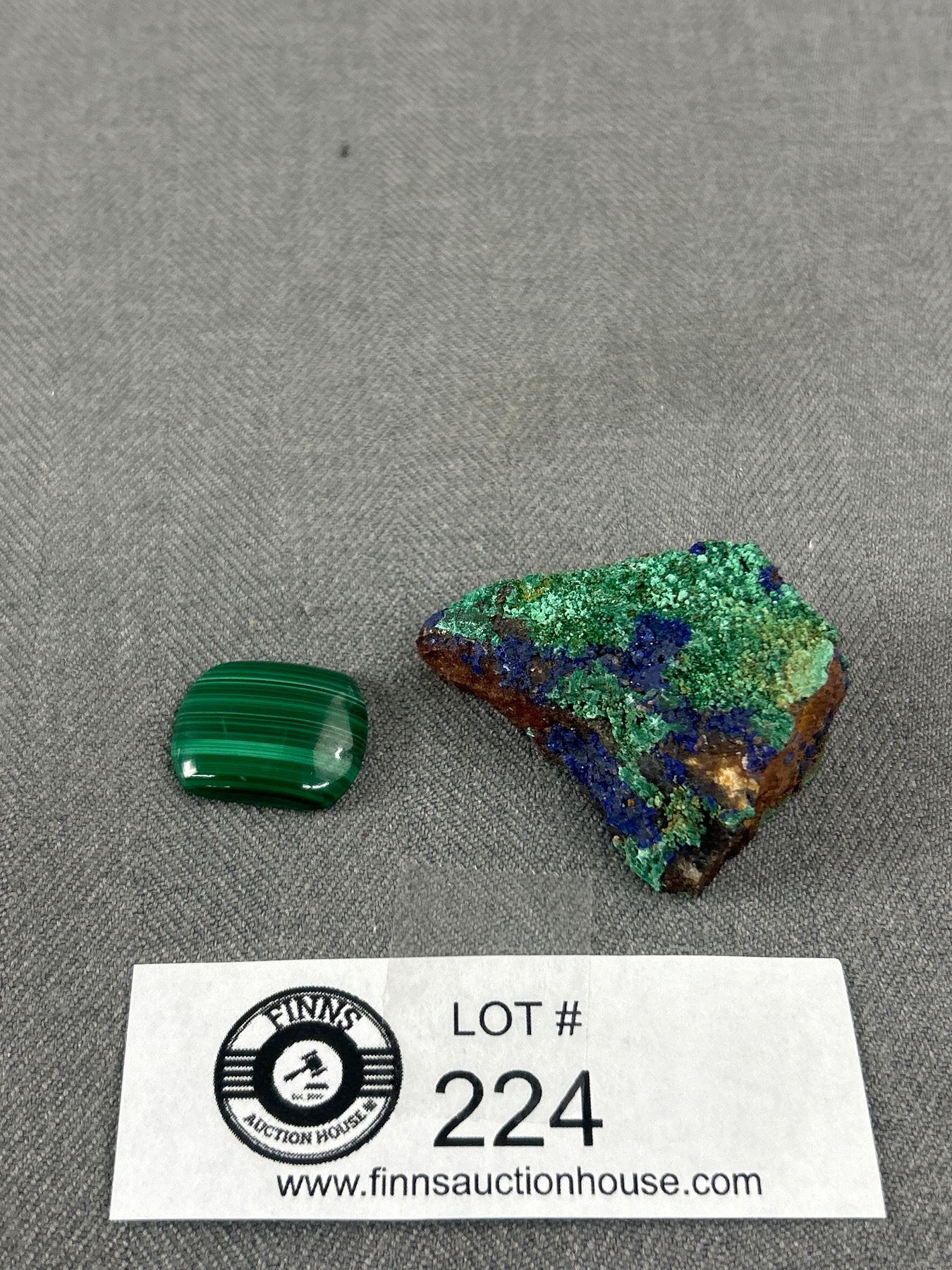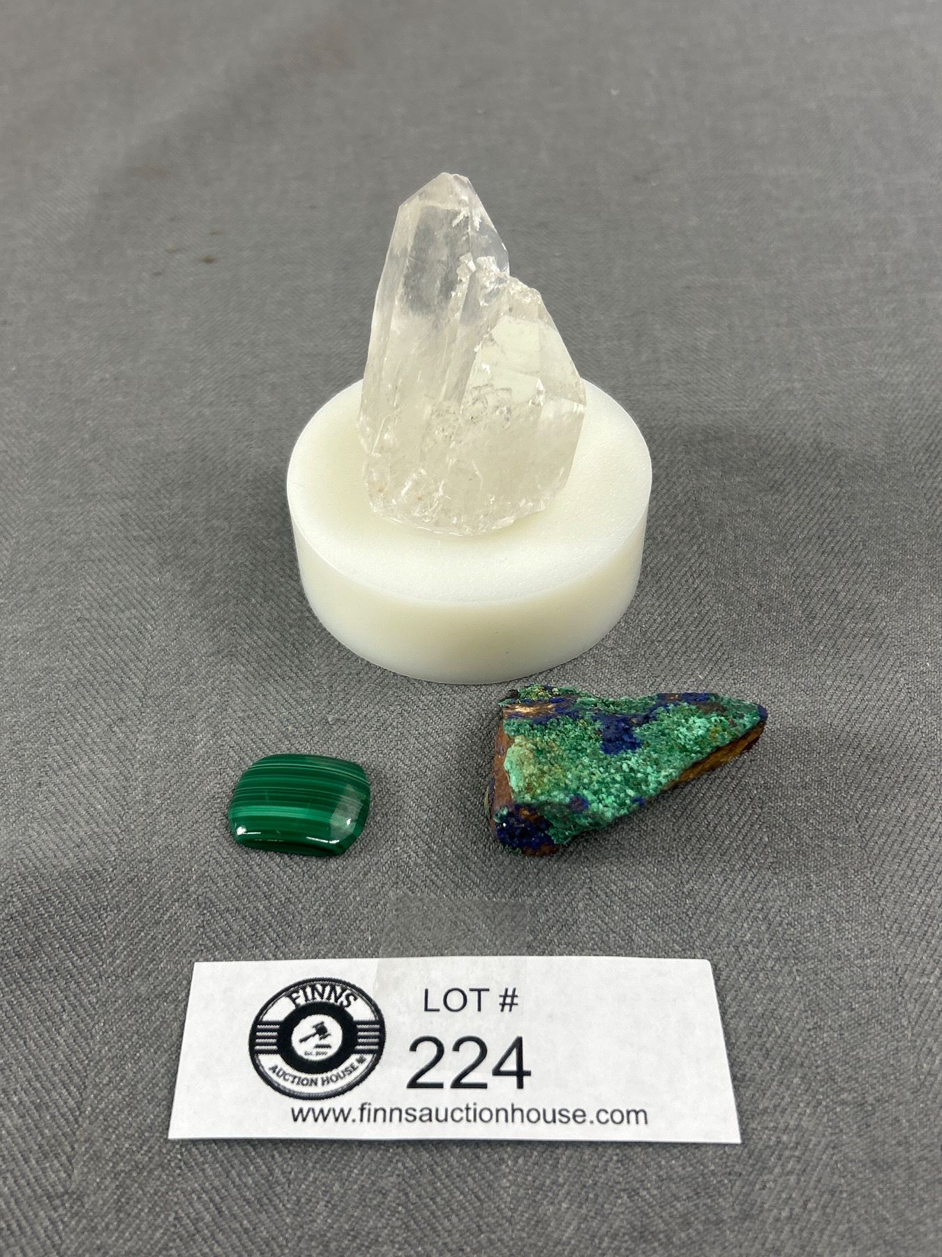Malachite Cut, Azurite Specimen (Morocco) [R. $480.00], & Clear Quartz Rough [R. $280.00]