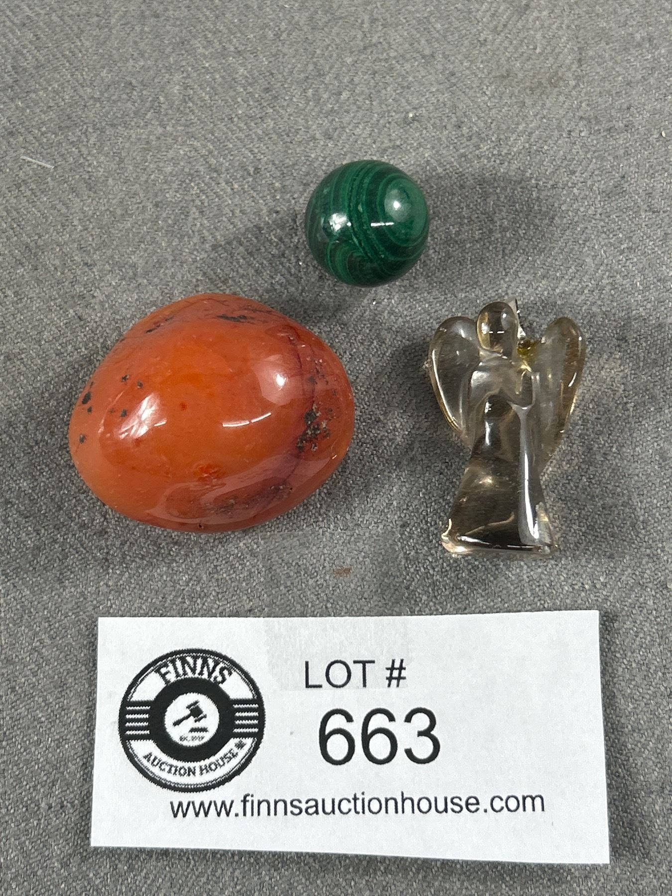 Malachite Marble, Carmelian & 1.25" Smoky Quartz Angel Pendant
