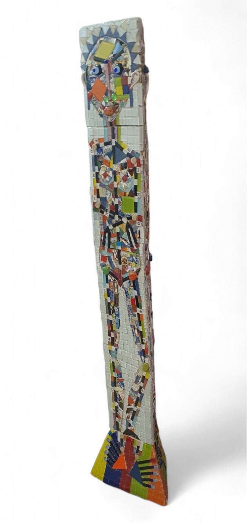 Male Point of View 2016 w/Ceramic, ceramic and glass tiles, shards, with metal base and rod (Michene