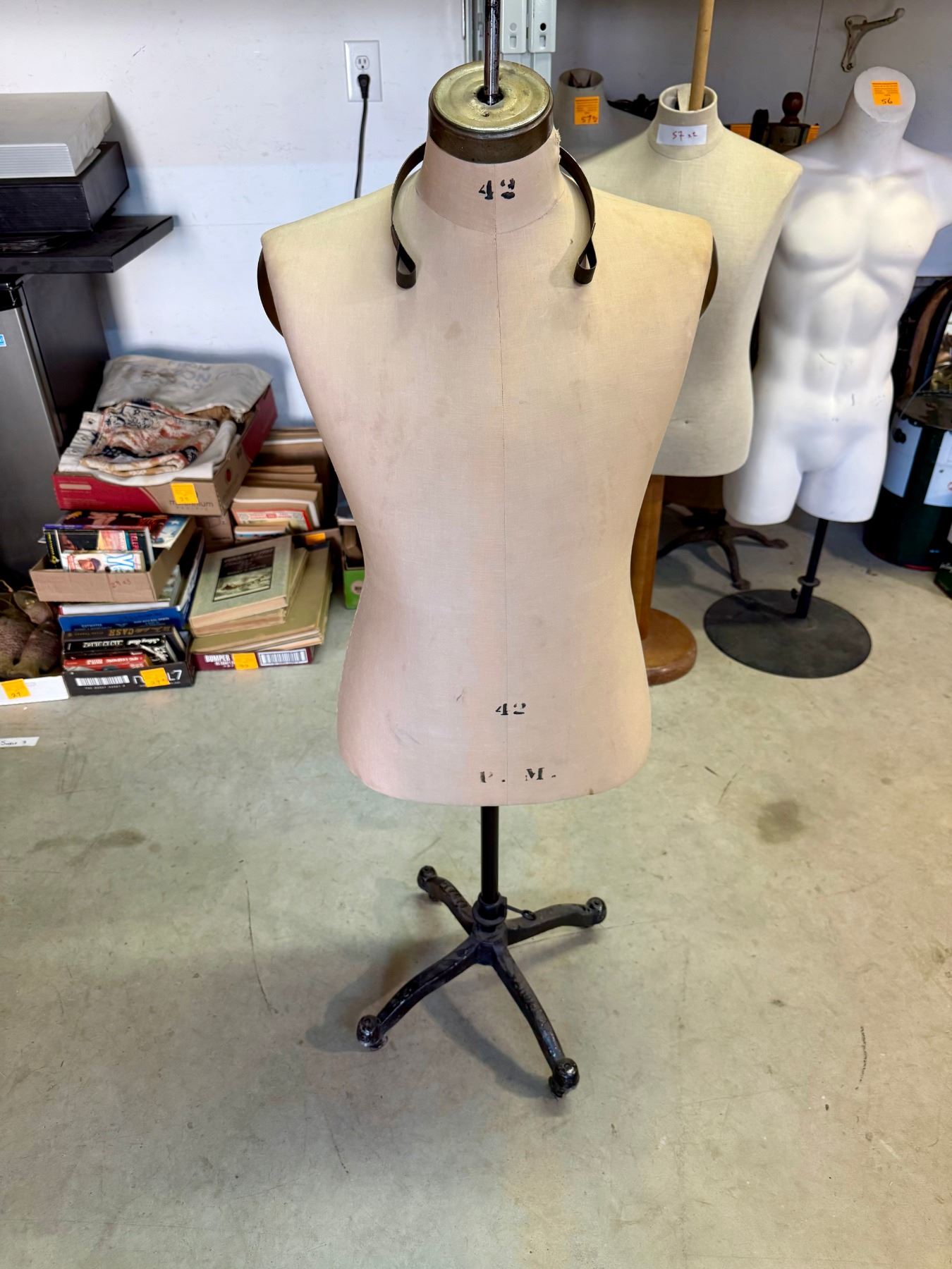 Male Torso Mannequin with Decorative Base and Adjustable Height on Wheels