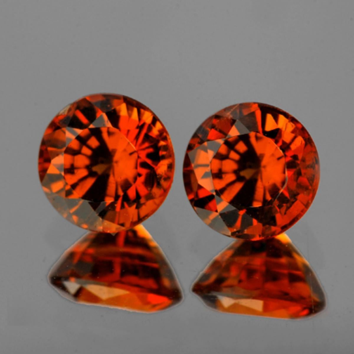 Natural Spessartite Garnet WEIGHT : 1.54 cts; SHAPE : Round; SIZE ( L x W x D ) : 5.00 mm; QUANTITY : 2 pieces (Perfectly Matched Pair) COLOR : Mandarin Orange AAA Color ; CLARITY : Flawless-VVS ; AAA Grade; ORIGIN : Nigeria; HARDNESS : 7.5; LUSTER : AAA Fire!!! TREATMENT : 100% Natural Unheated;