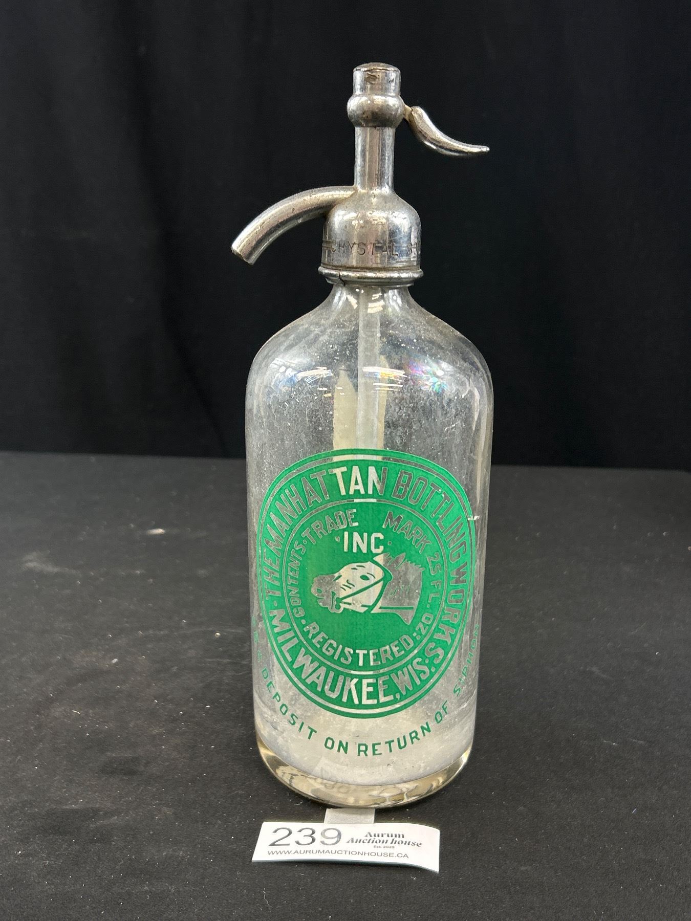 Manhattan Bottling Works Millwakee Wisconsin Green Label Seltzer Bottle