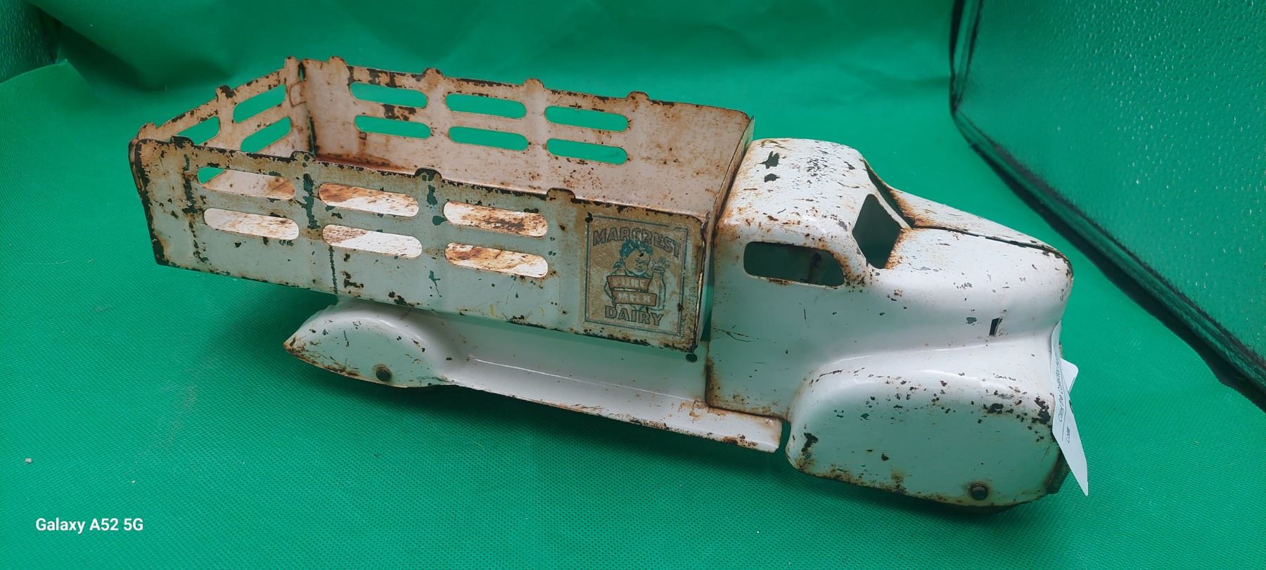 Marcrest Dairy pressed steel truck, 1950s 13"