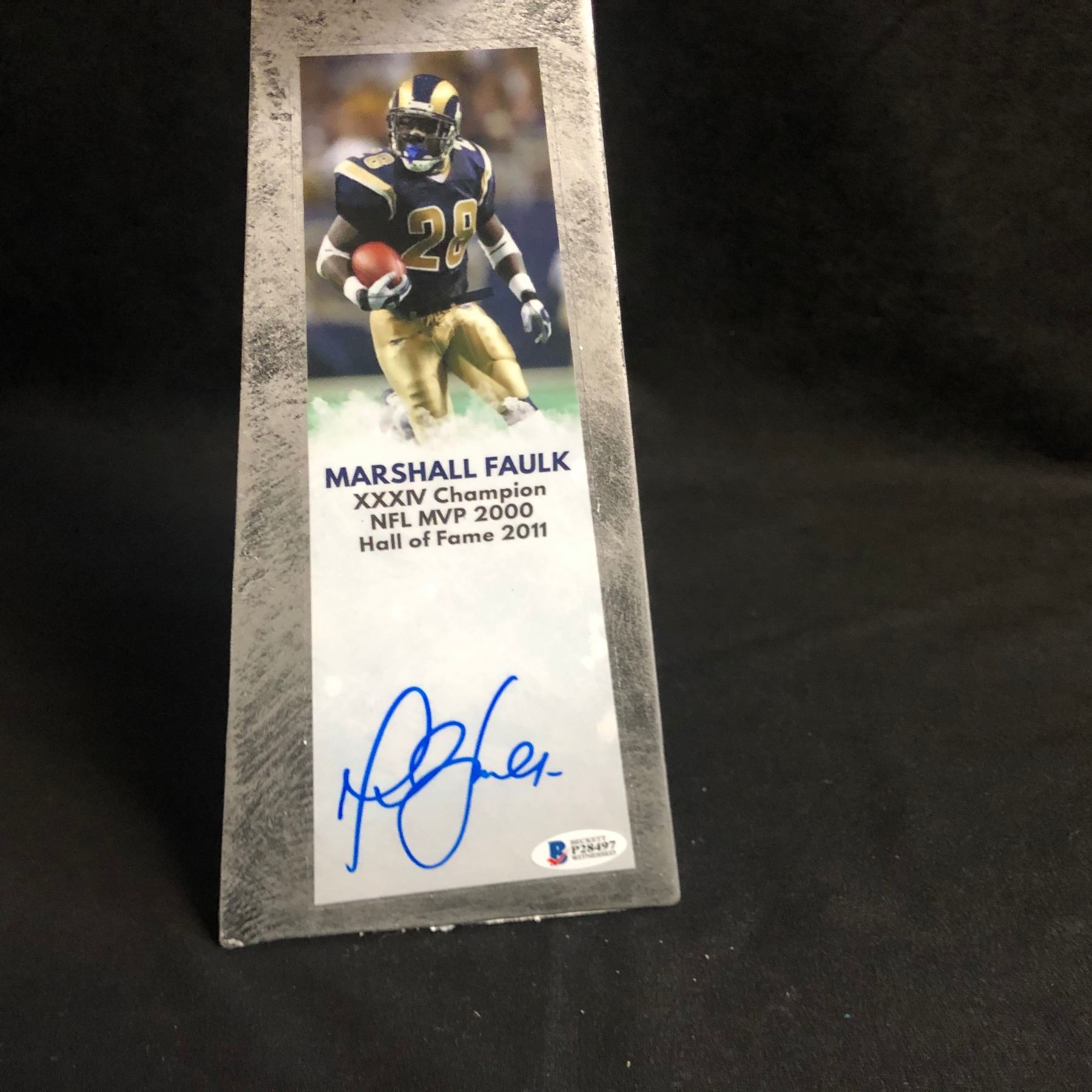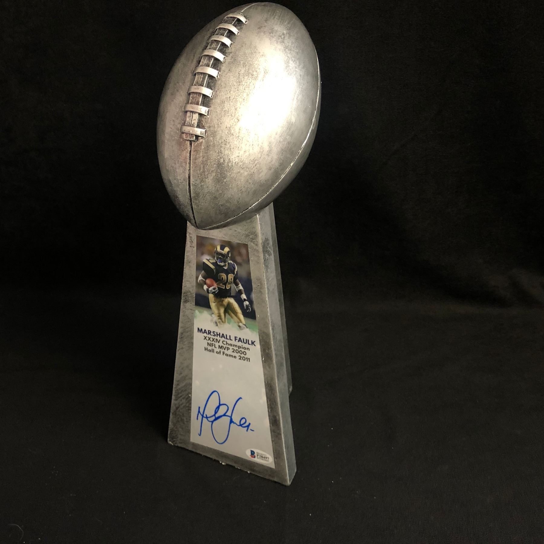 Marshall Faulk Signed Rams 15” Lombardi Football Championship Trophy (Beckett COA)