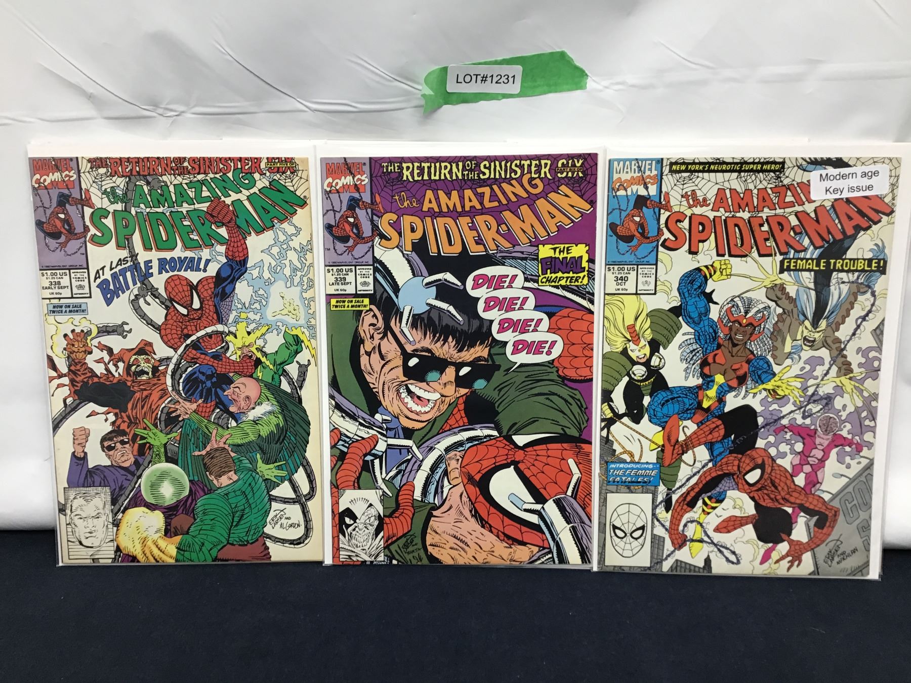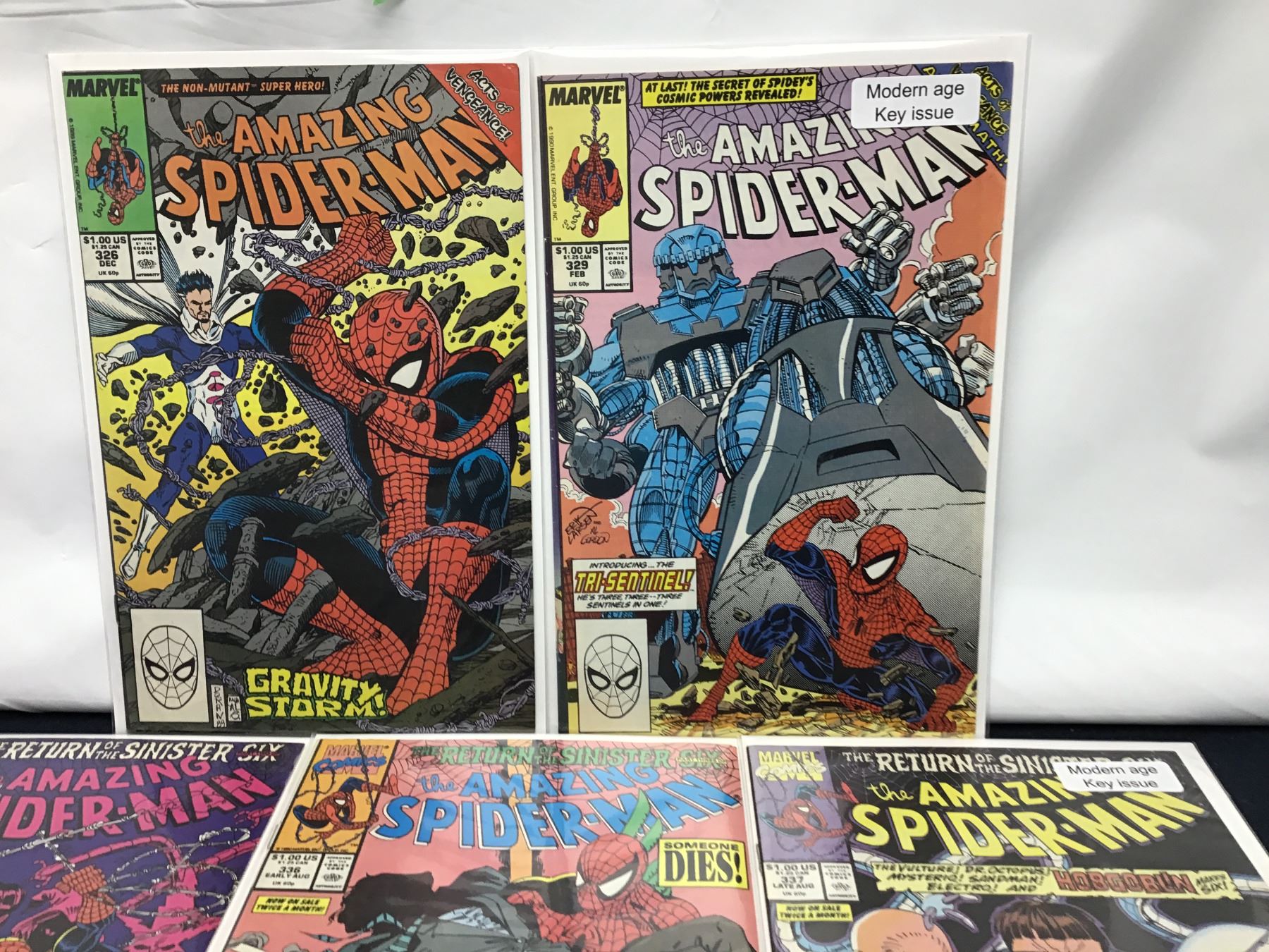 Amazing Spider-Man Keys #329 1st Appearance Tri-Sentinel, Debut of Spider-Mans Captain Universe Suit, #337 2nd Appearance Sinister Six with Hobgoblin, #340 1st Team Appearance Femme Fatales