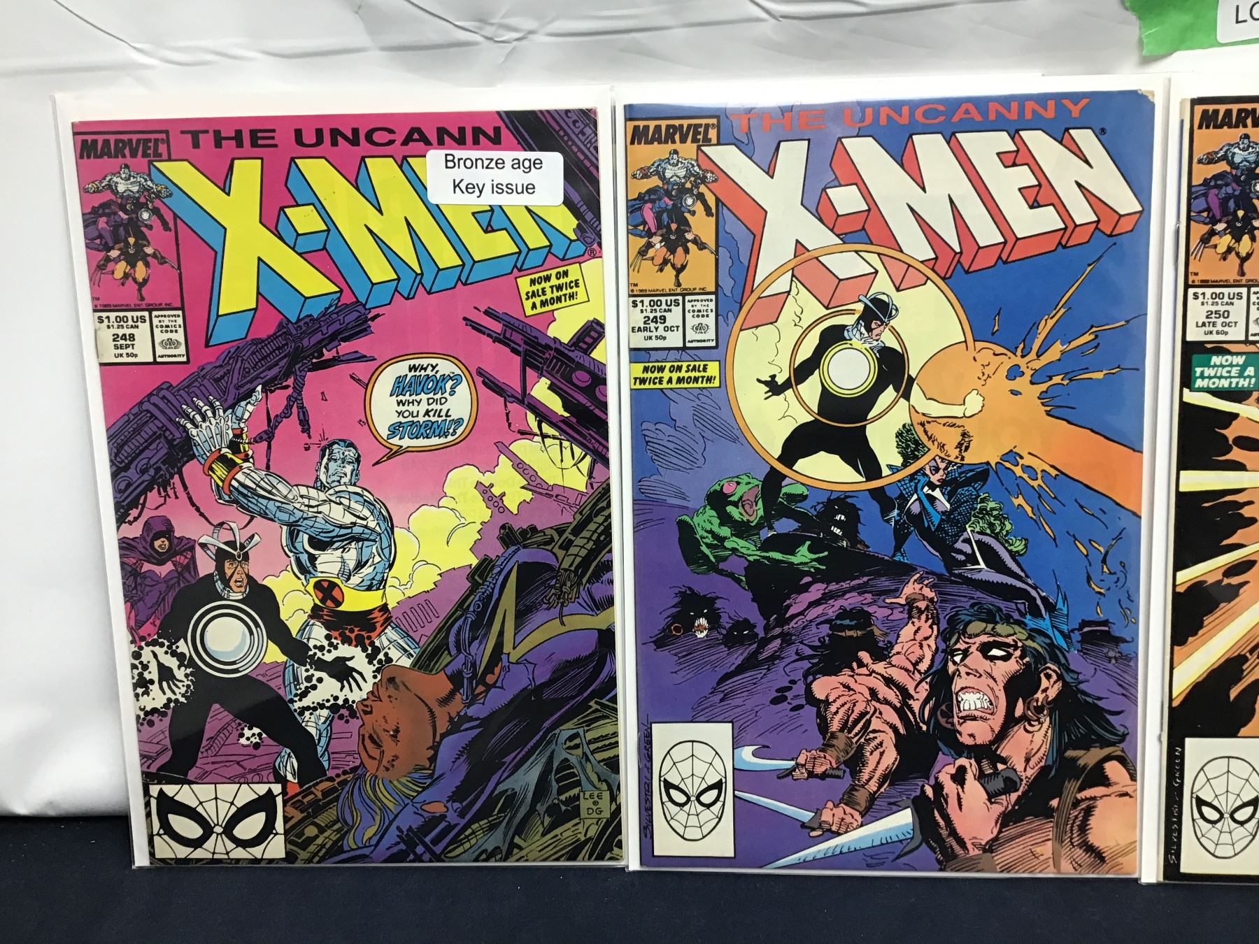 X-Men Keys #245 Parody of DCs Invasion Limited Series, Jean Grey appears Full-frontal nude, #248 1st Jim Lee Artwork on X-Men, #250 1st Appearance Worm
