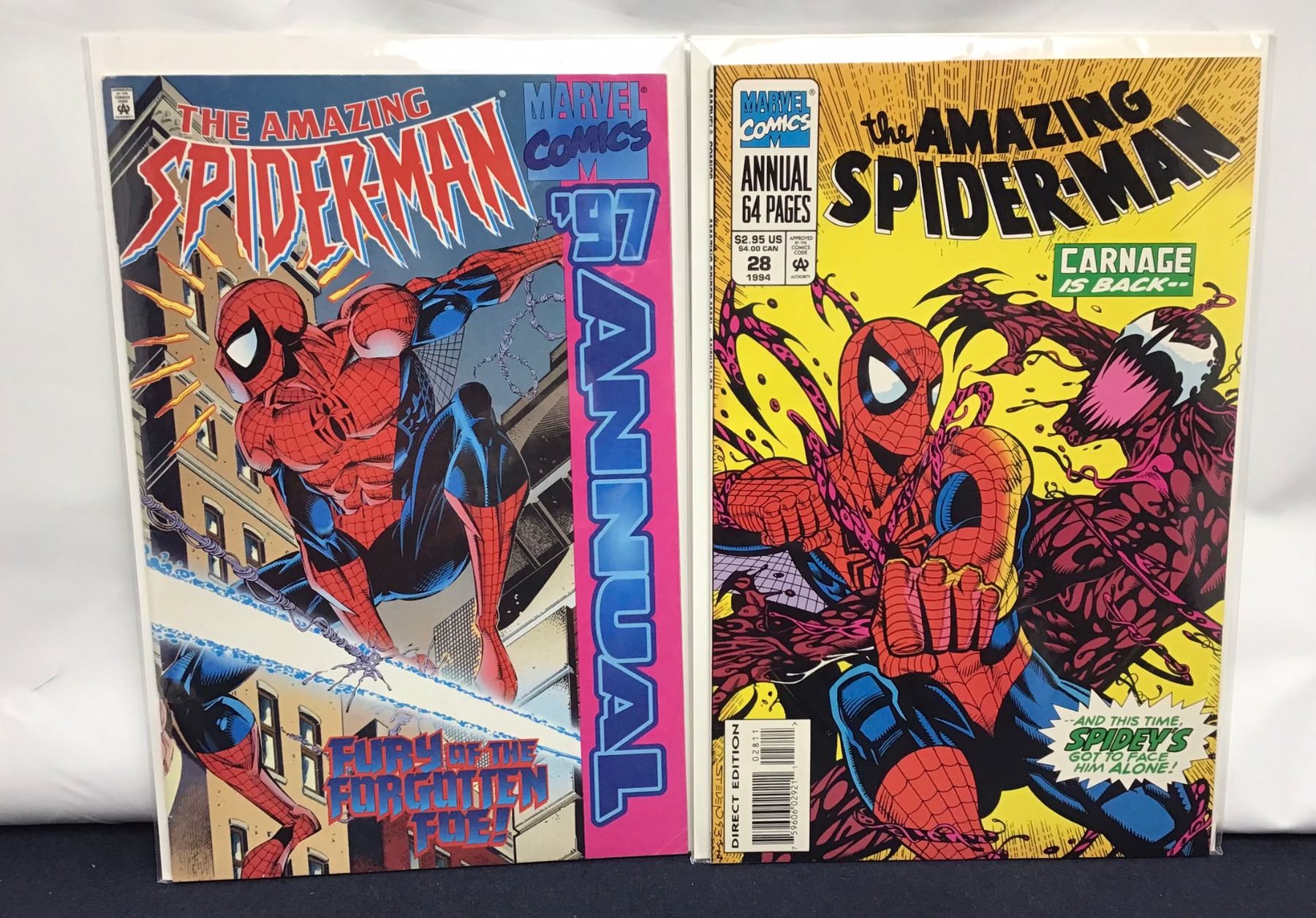 Collection of Amazing Spider-Man Annuals #20 (key) 1st cover app. Iron Man 2020,#21 Newsstand (key) Marriage of Peter Parker and Mary Jane Watson