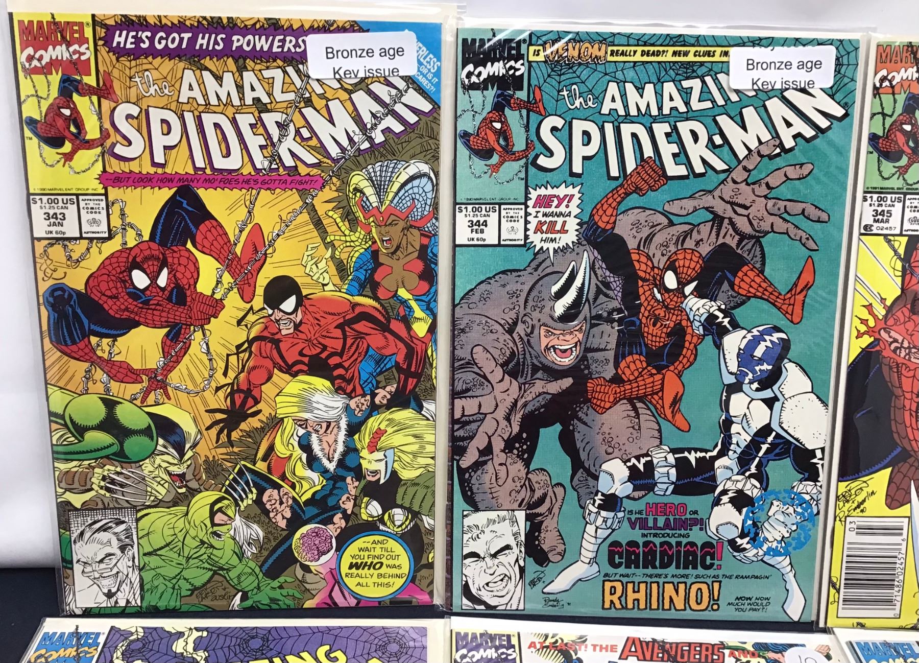 Collection of Amazing Spider-Man #343 (key) 1st cameo Cardiac, #344 (key) 1st app. Cletus Kasady, #345 (key) 1st app. Carnage (Symbiote)