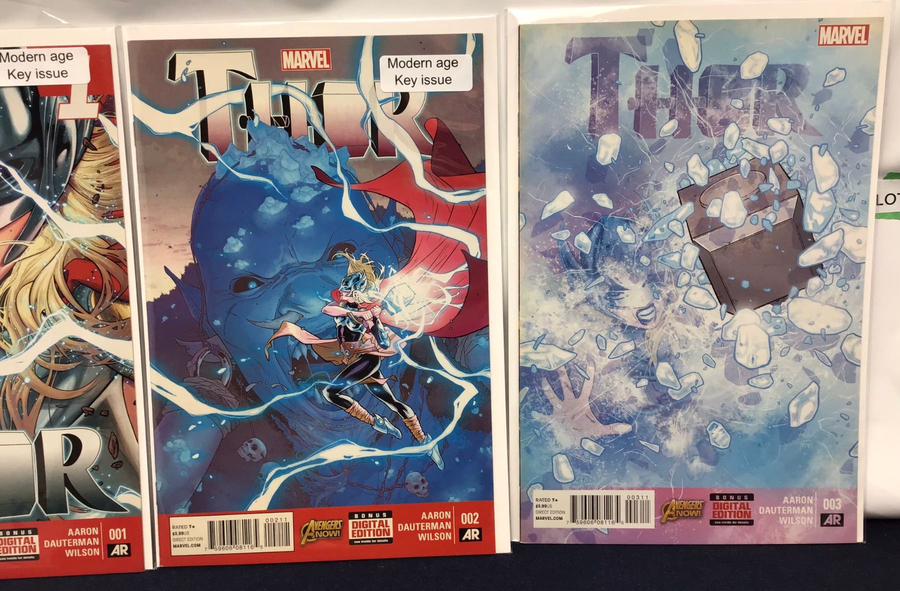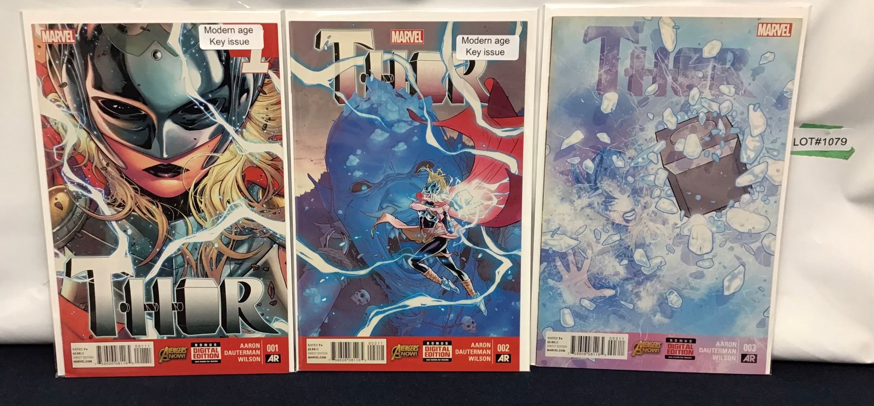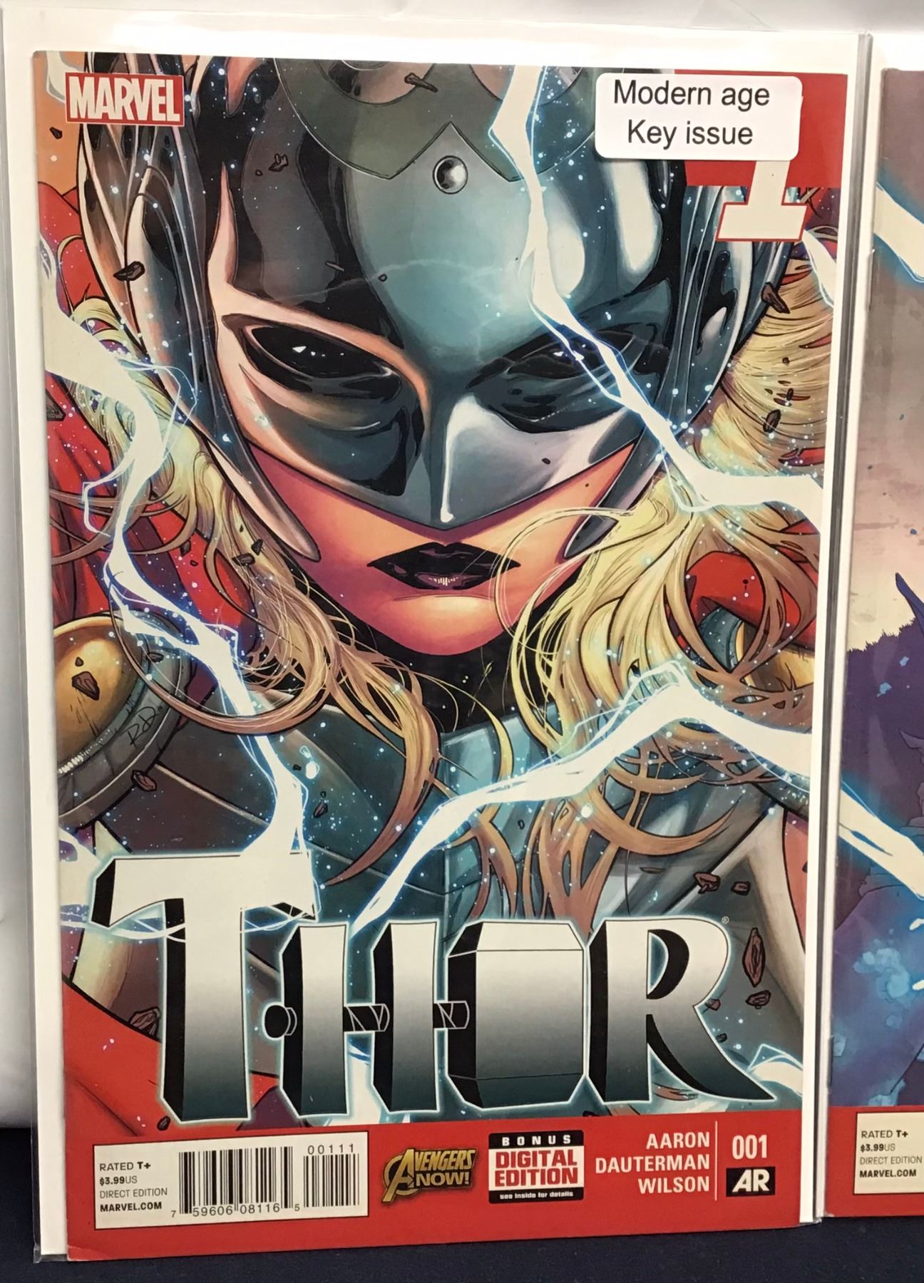 Thor #1-3 (2014) #1 - 1st cover appearance of Jane Foster as Thor (key), #2 - 1st full appearance of the new Thor (later to be revealed Jane Foster, key)