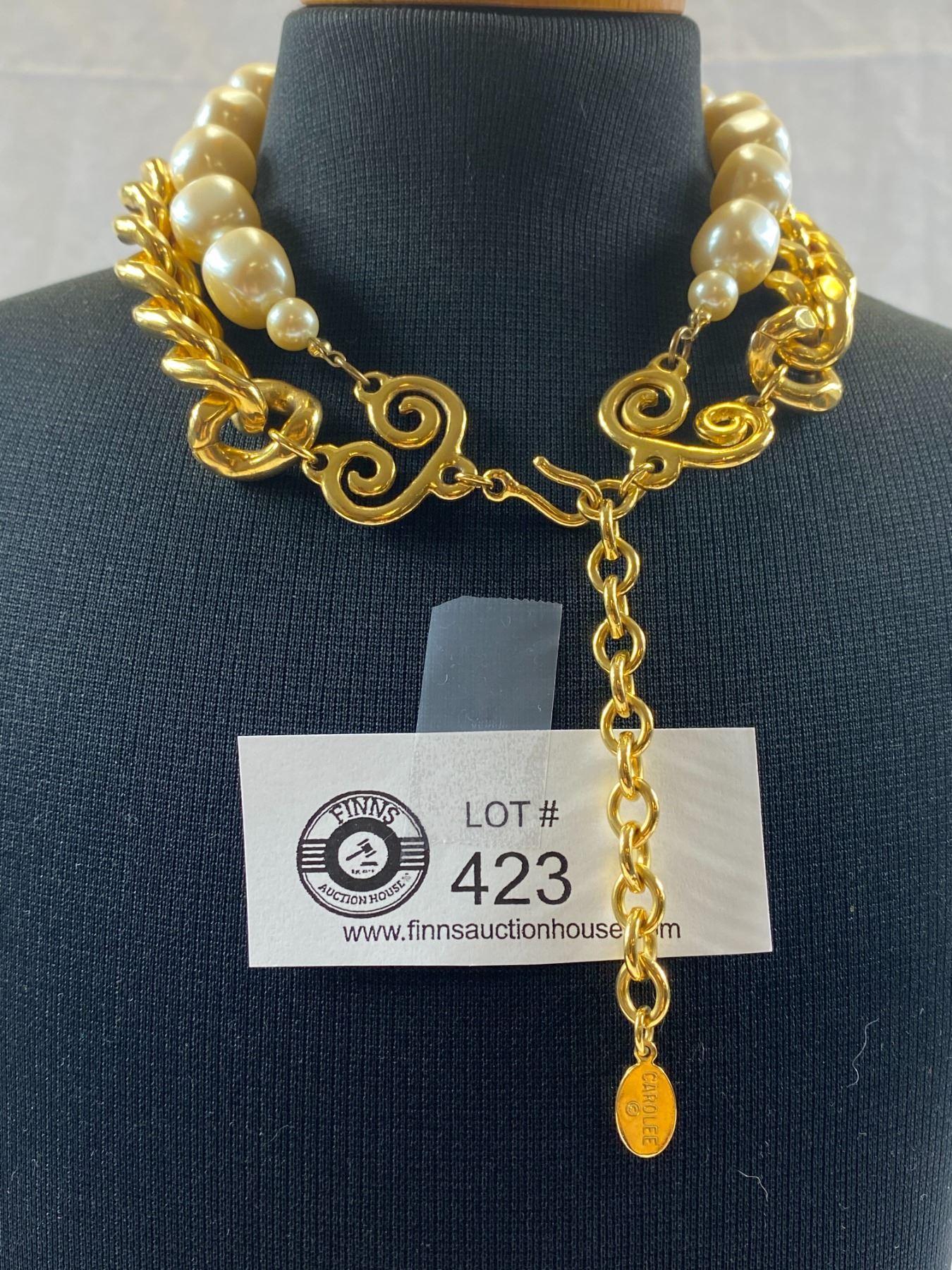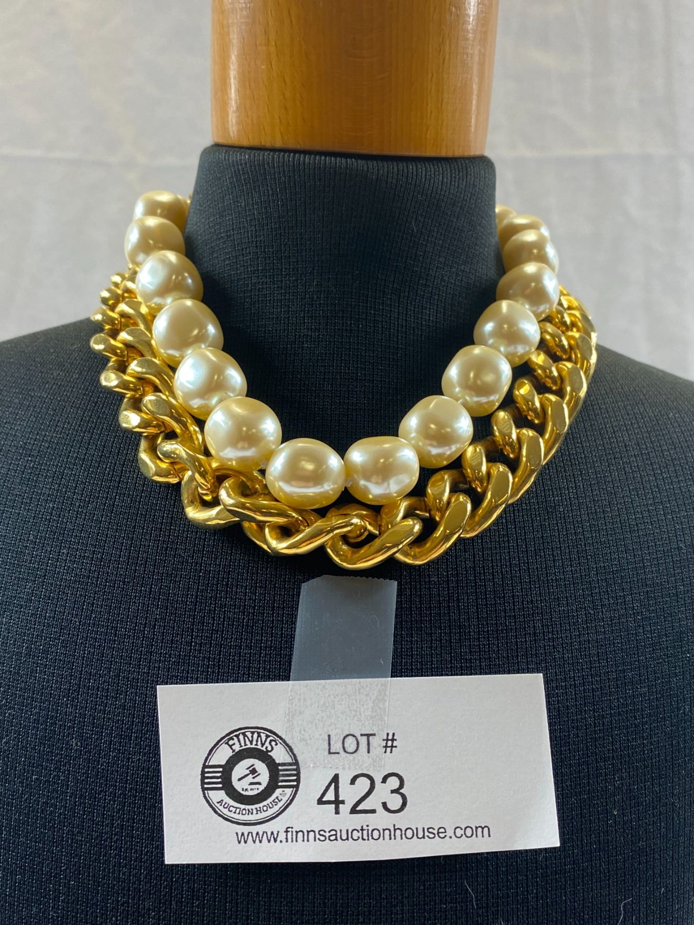 Massive Gold Plated and Faux Pearl Choker Necklace 1970's