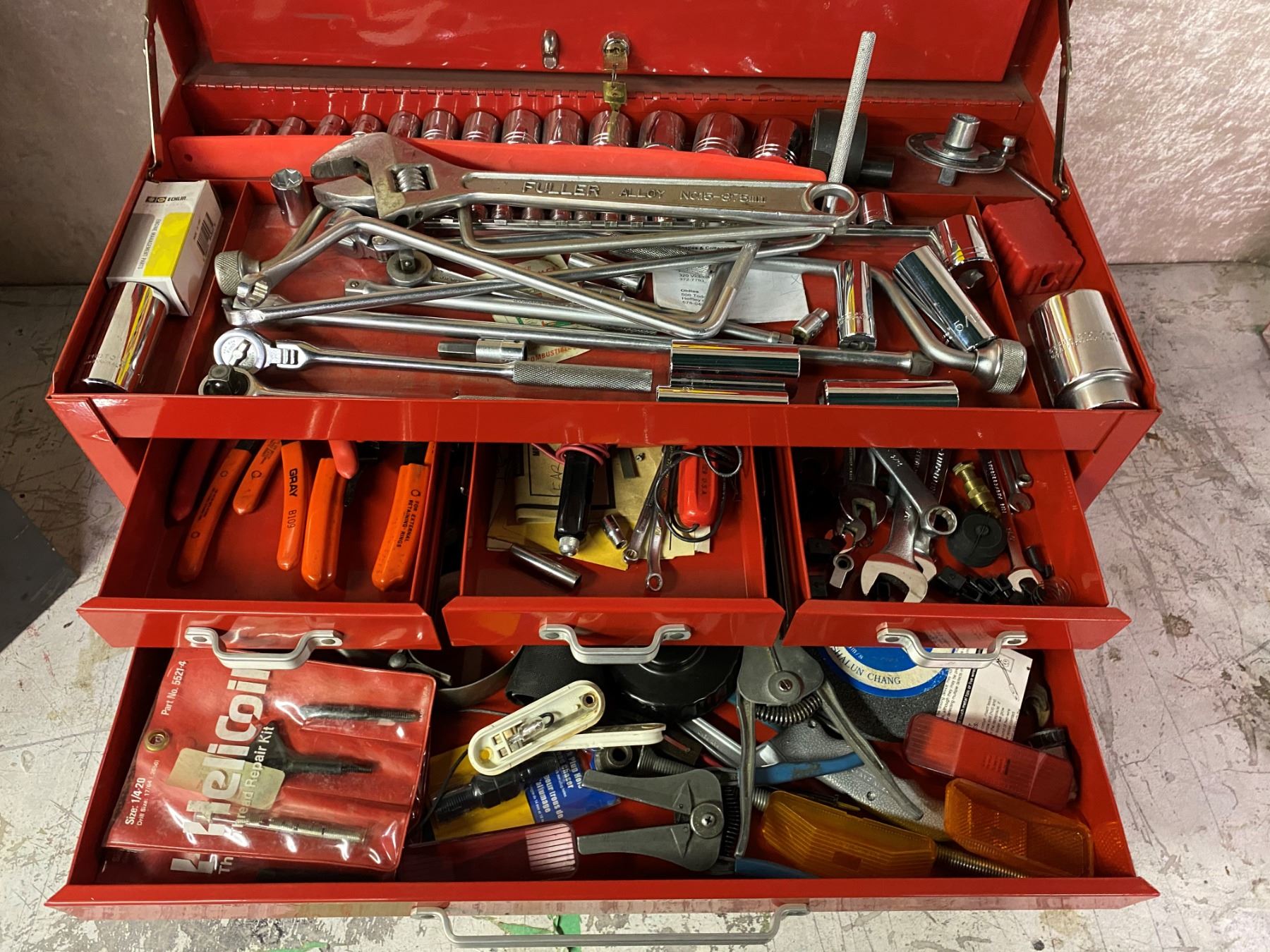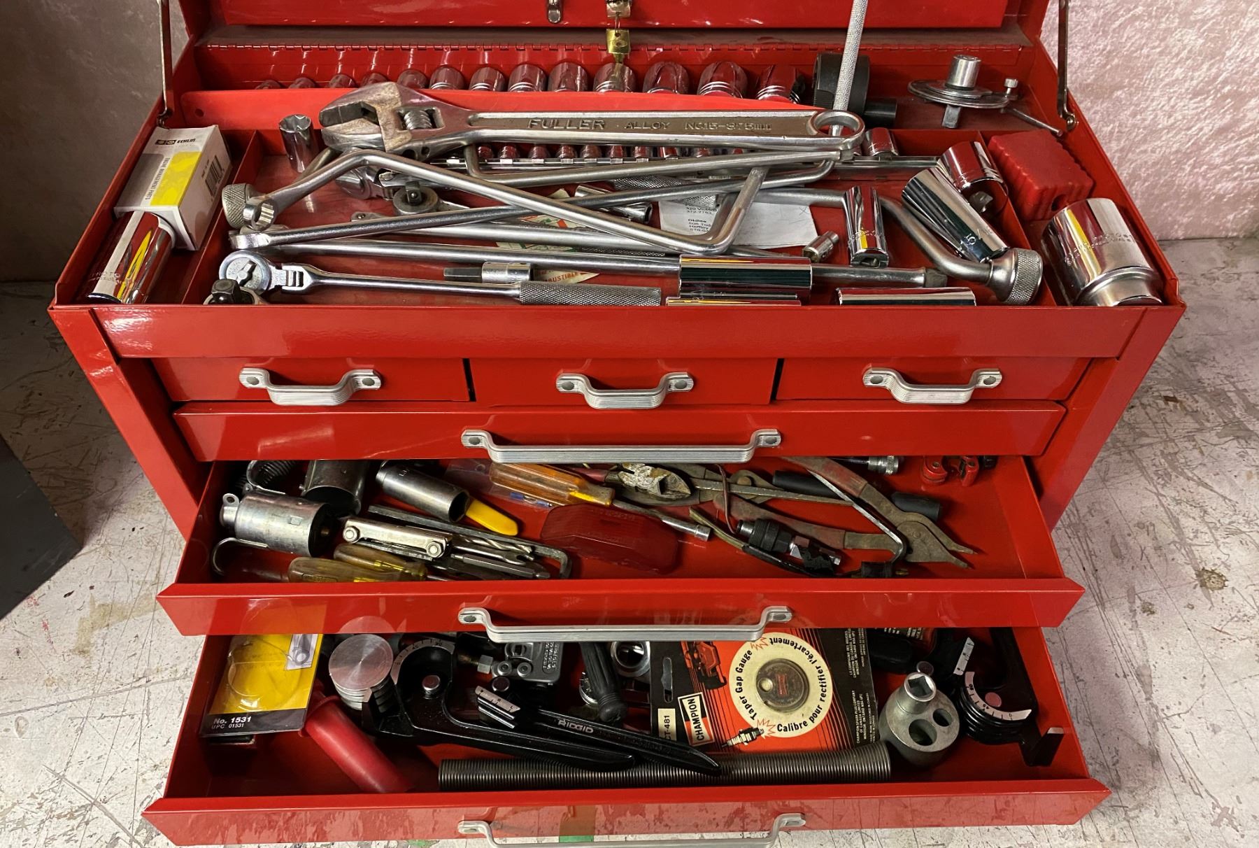 Mastercraft six drawer tool cabinet w/ tools (some proto & grey etc.)