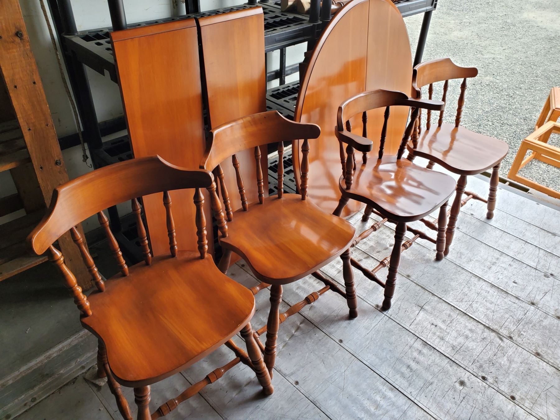 Matching table with two leaf's and matching 4 chairs - Most Items have not been tested - 17% Buyer Fee. Payment Processed through Live Auction World ( Visa or Master Card ) pick up Saturday, or Tuesday