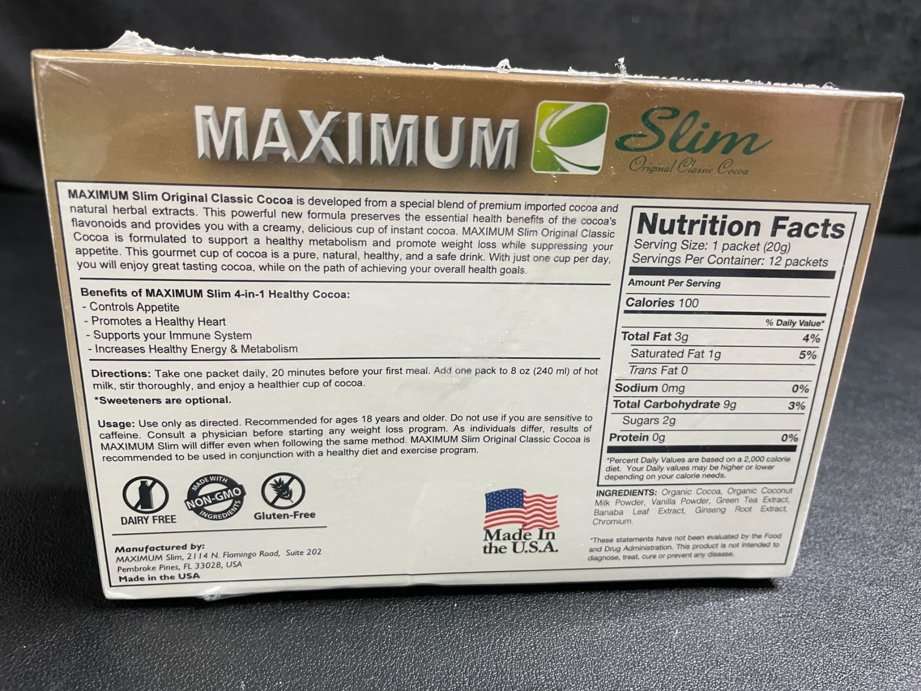 - Maximum Slim Premium Instant Cocoa – Creamy, Delicious 4-in-1 Formula with Natural Herbal Extracts for Energy & Vitality, Maximum Satisfaction & Taste. No Side Effects (Laxative-Free), 12 Ct