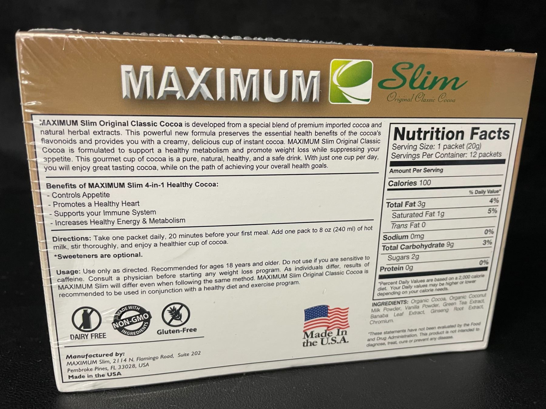 Maximum Slim Original Premium Instant Cocoa (12 Packs) - New Sealed