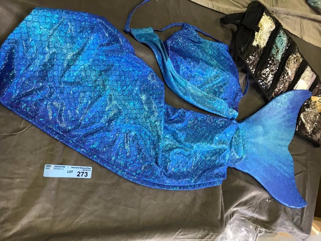 Mermaid Costume with blue top, blue skirt and blue fin (also has beads)