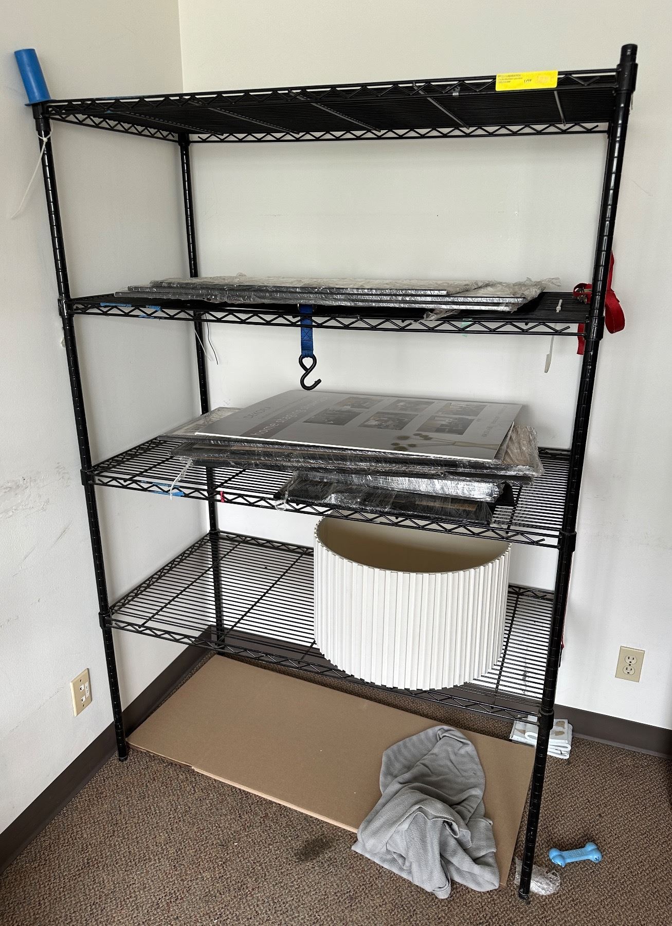 Metal 4 tier shelf approx. 49in L 25in D 71H (contents on shelf is not included)