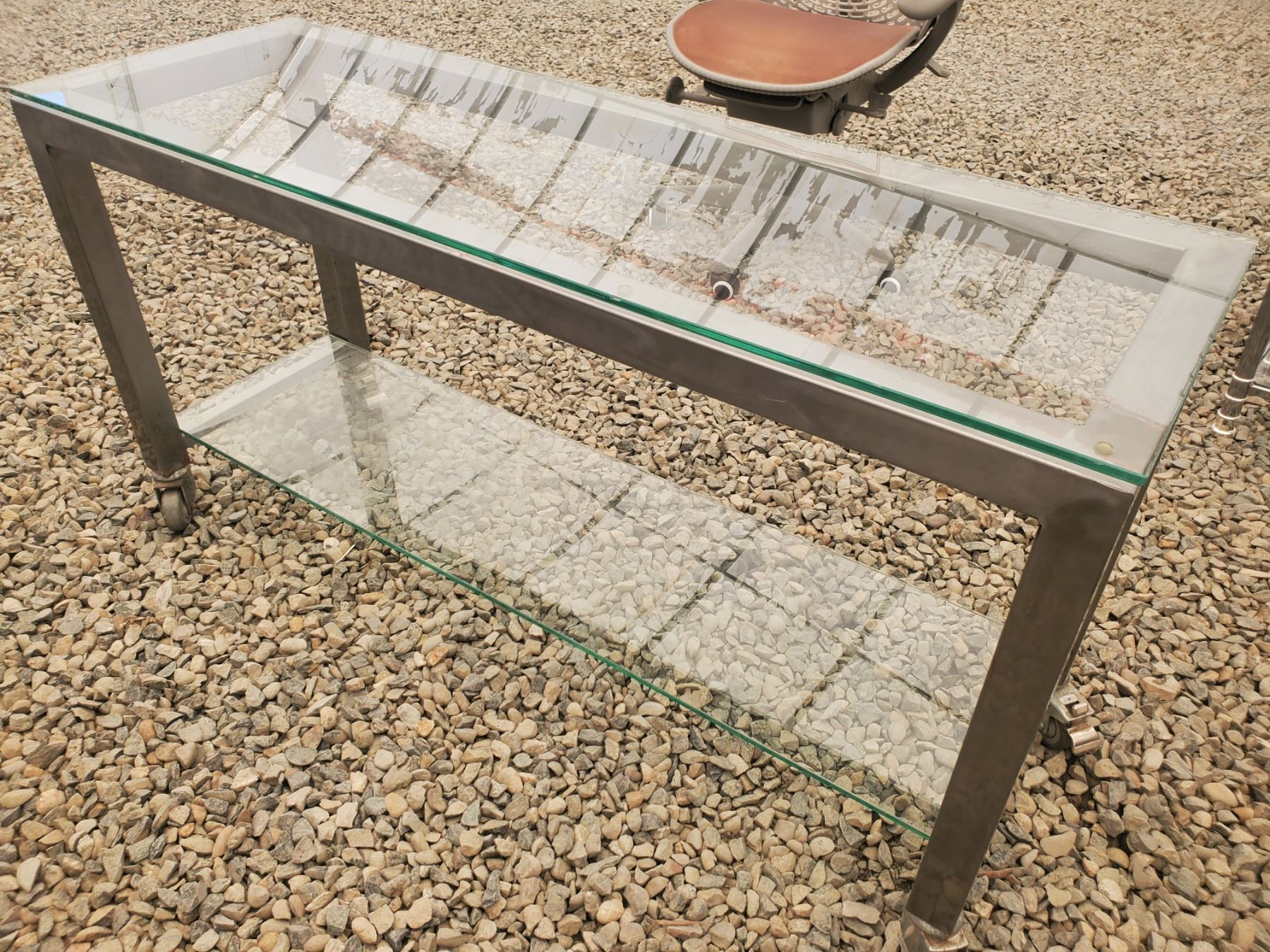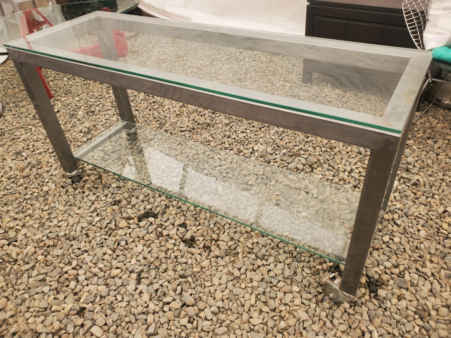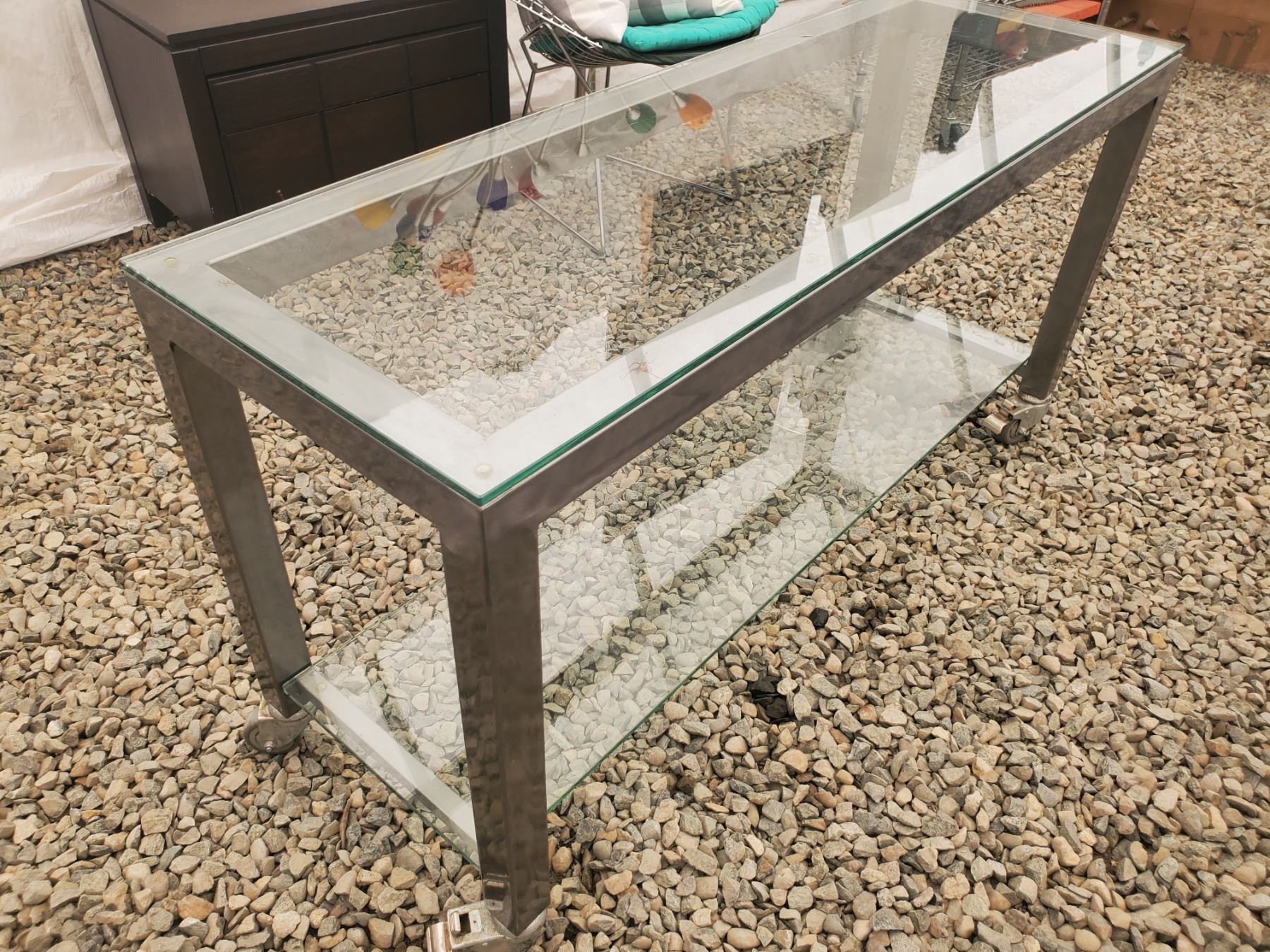 Poitras Metal And Glass Sofa Table - Most Items have not been tested - 17% Buyer Fee. Payment Processed through Live Auction World ( Visa or Master Card ) pick up Saturday, or Tuesday