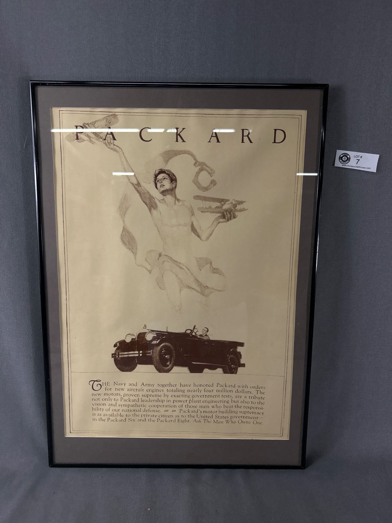 Metal Framed Packard Car Advertisement. Approx. 17" x 24"
