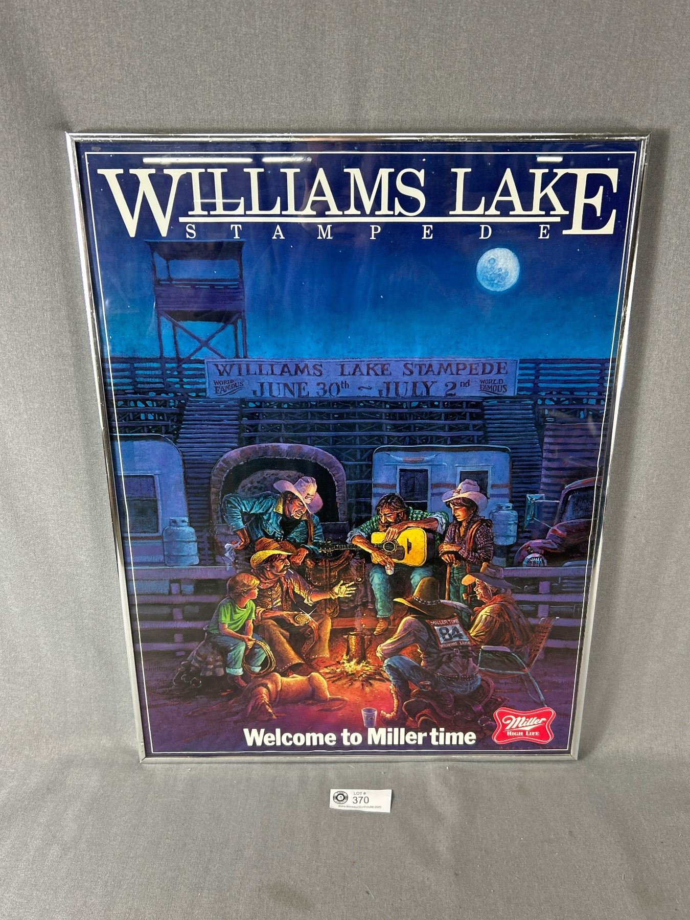 Metal Framed Williams Lake Stampede "Welcome To Miller Time" Poster. Approx. 24" x 18"