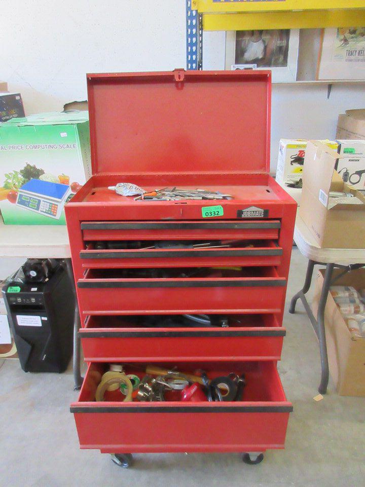 12" x 22" x 40" tall. Some hand tools and bits in the chest.