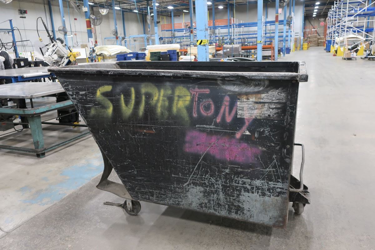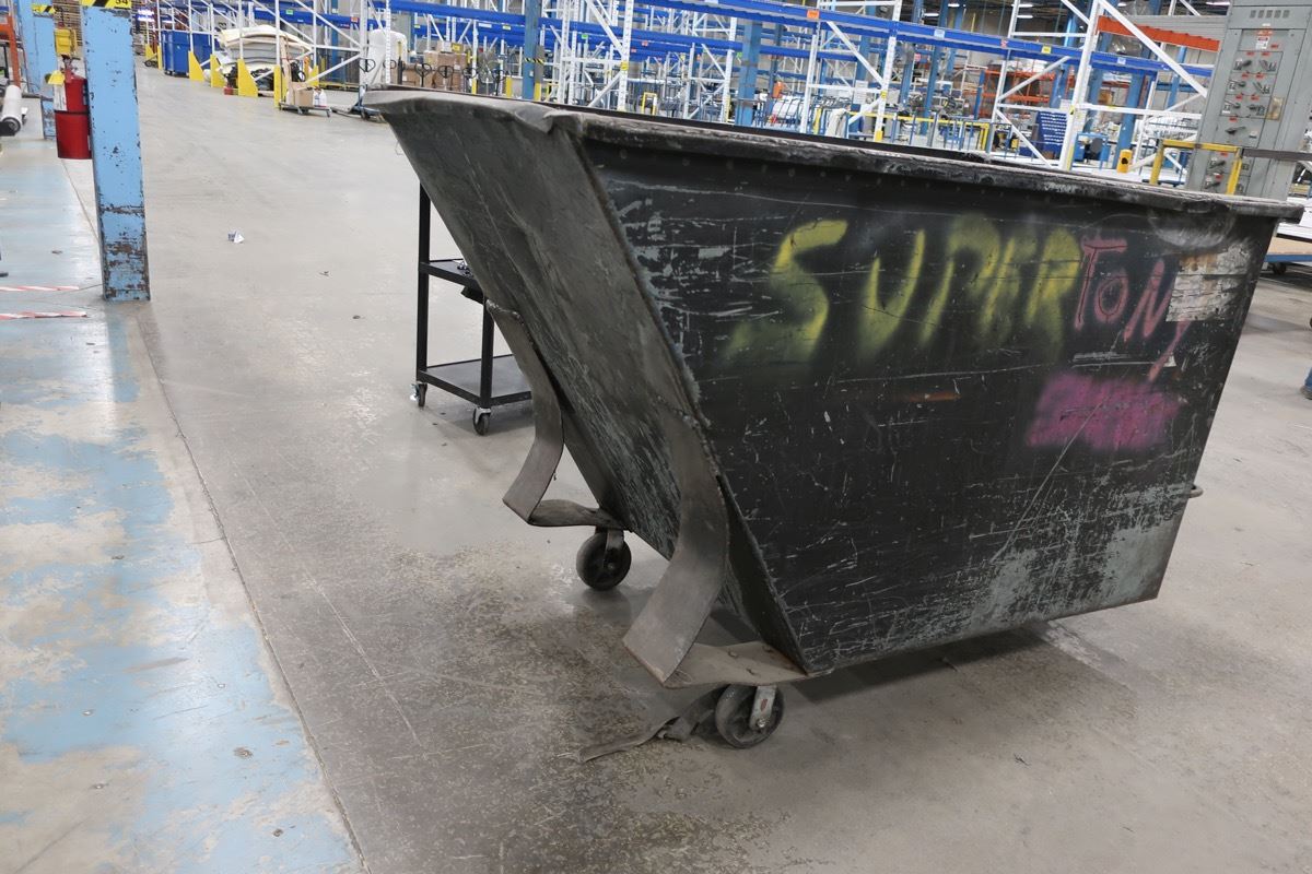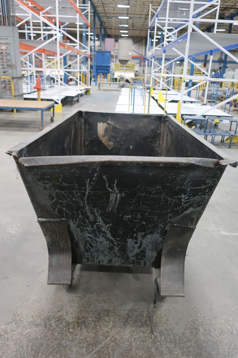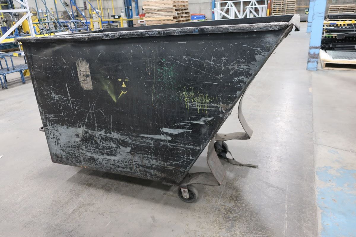 Metal tilting bin on 4 wheels 74" x 38" x 48"