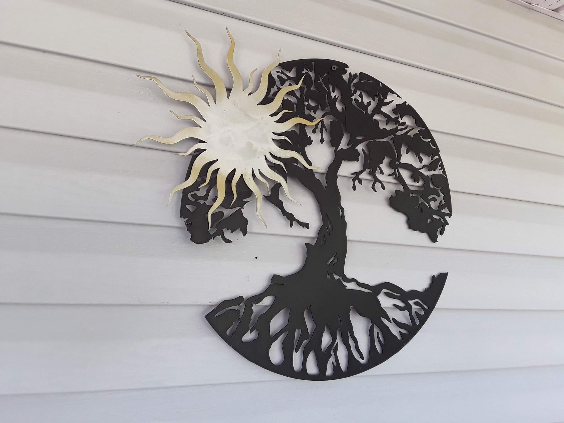 Metal wall hanging of sun and tree Most Items have not been tested - 17% Buyer Fee. Payment Processed through Live Auction World ( Visa or Master Card ) pick up Saturday, or Tuesday