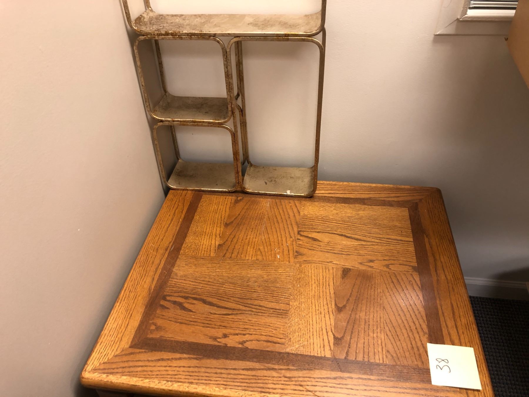 Metal wall-mount shelf and an oak end table from the popular sci-fi series