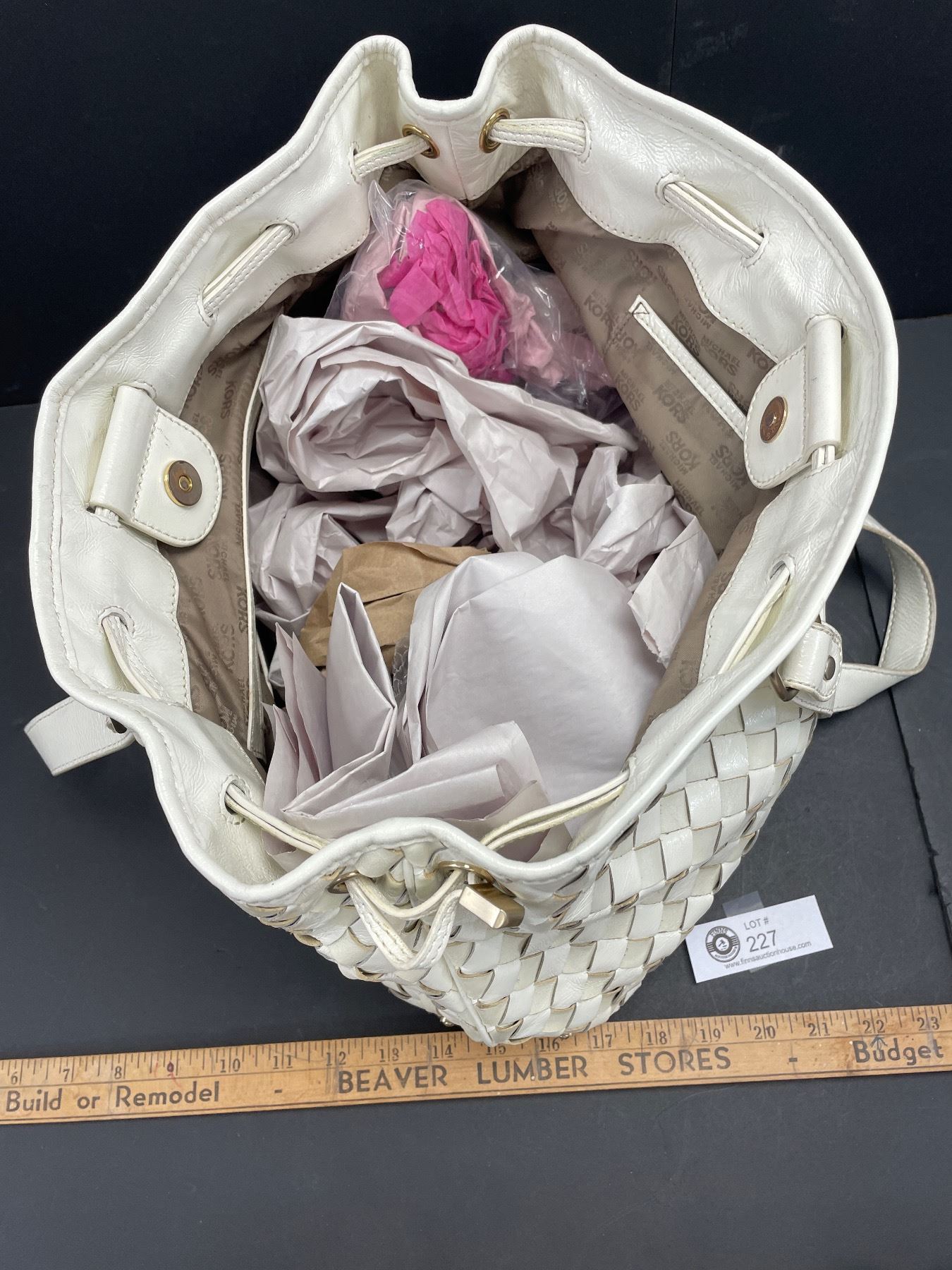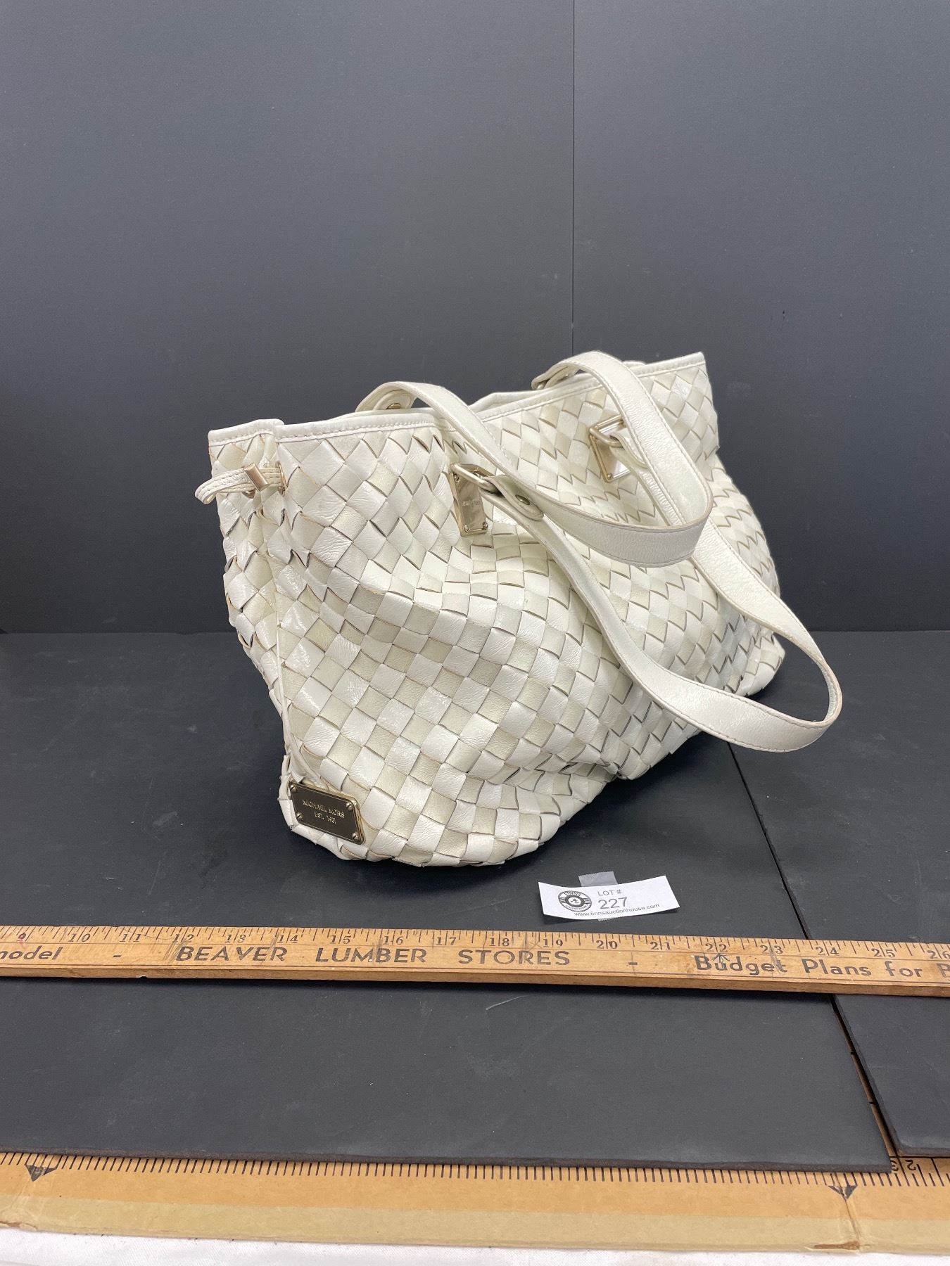 Michael Kors Vanilla Off White Woven Newbury Leather Tote/Satchel Handbag - Very Good Condition