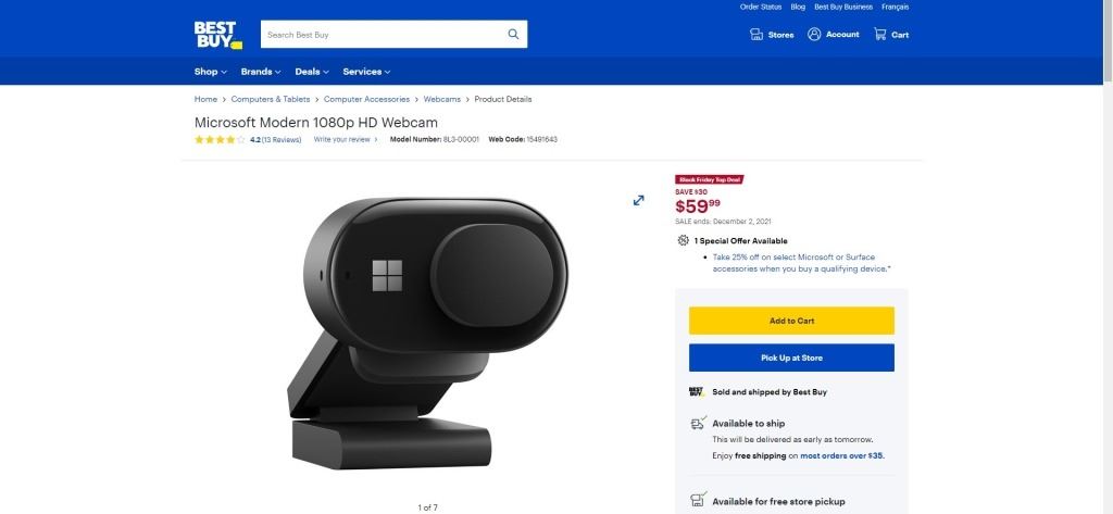 Microsoft Modern 1080p HD Webcam Tested and Working Retail $90