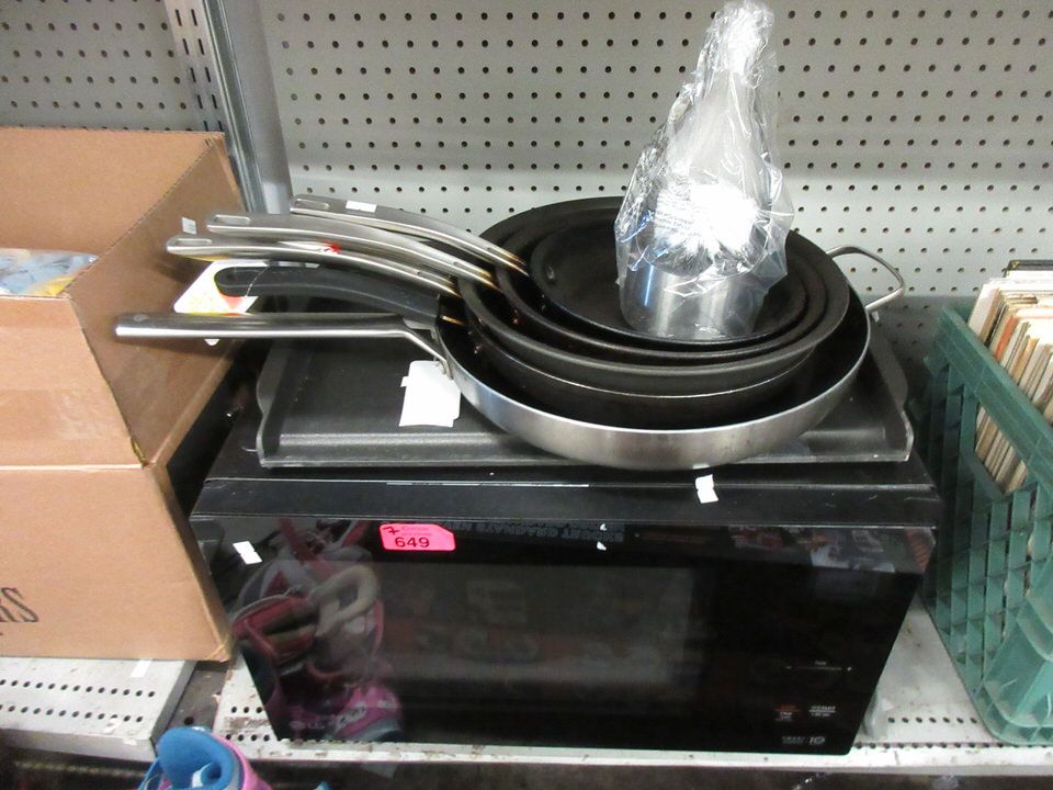 LG Smart inverter microwave, toilet brush & 5 assorted non stick pans. Store return.