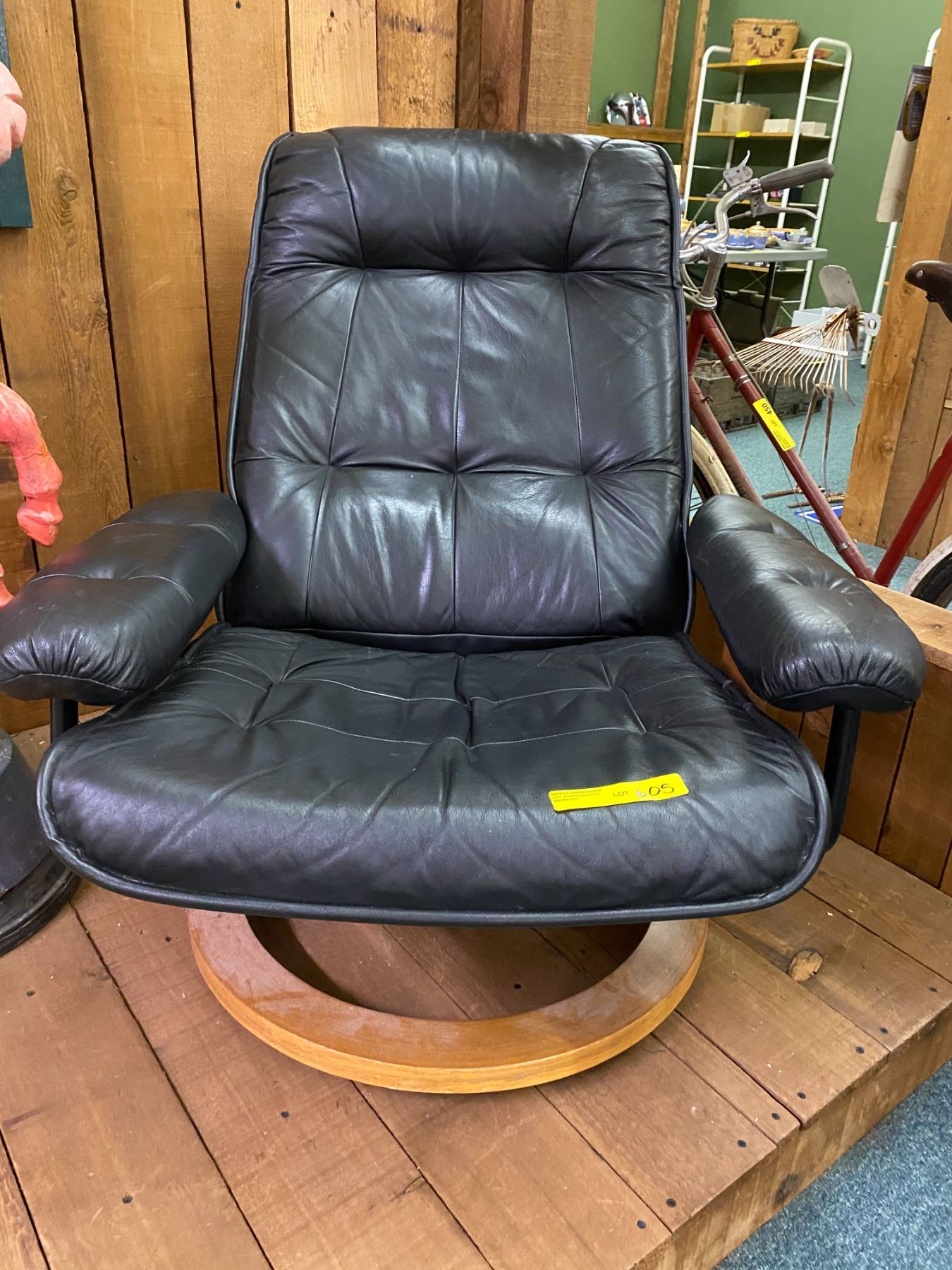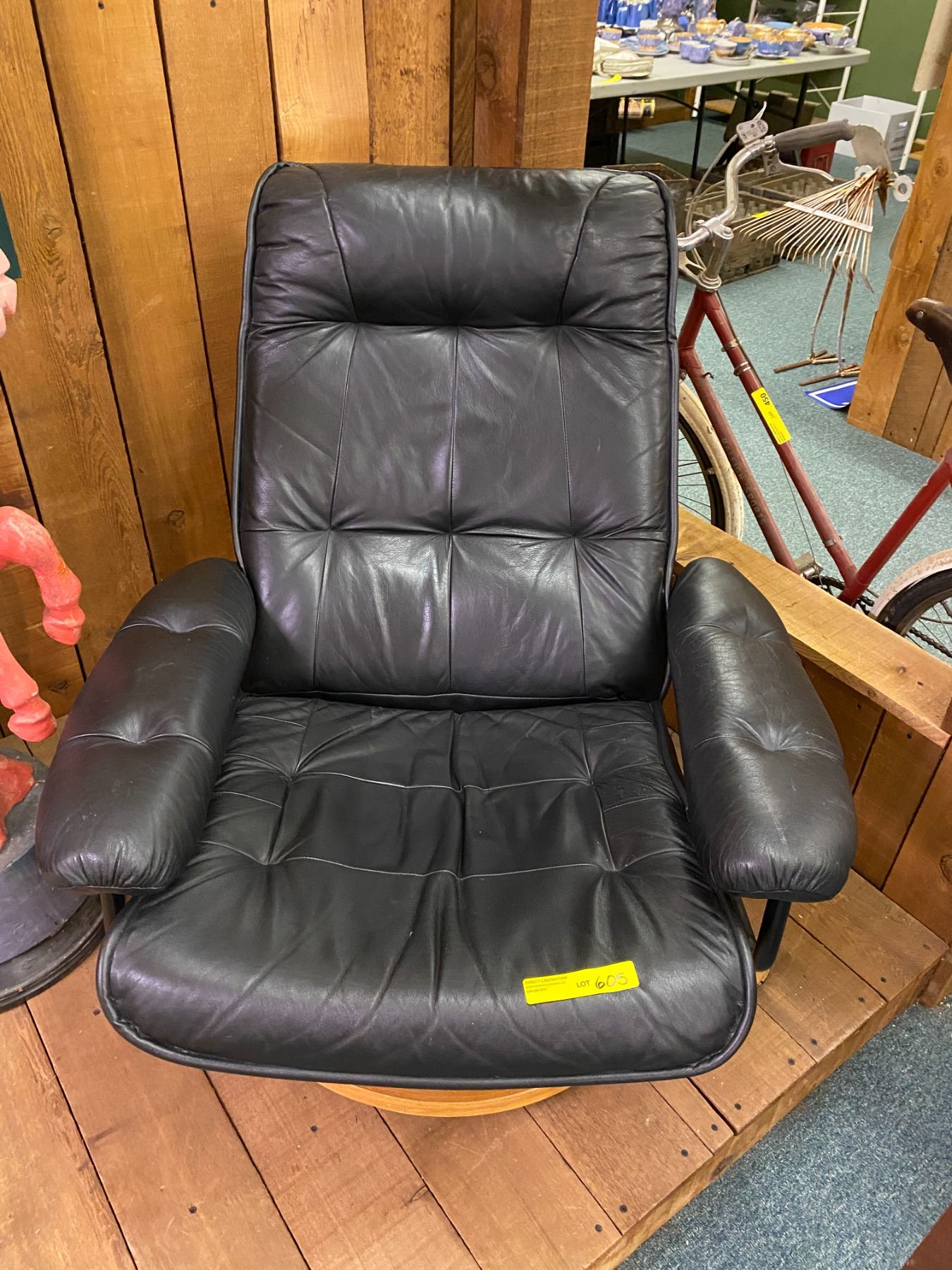 Mid Century Black Leather Reclining and Swivel Chair - Mulhauser style - excellent condition