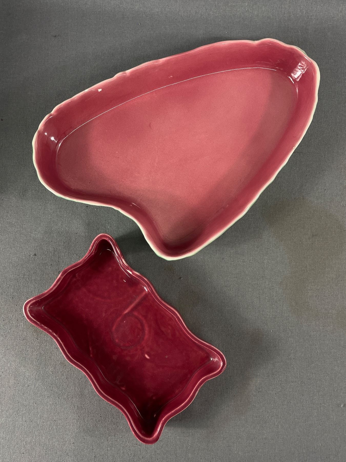 Mid Century Modern Calif Pottery Low Profile Planter Trays. Largest 15" Long