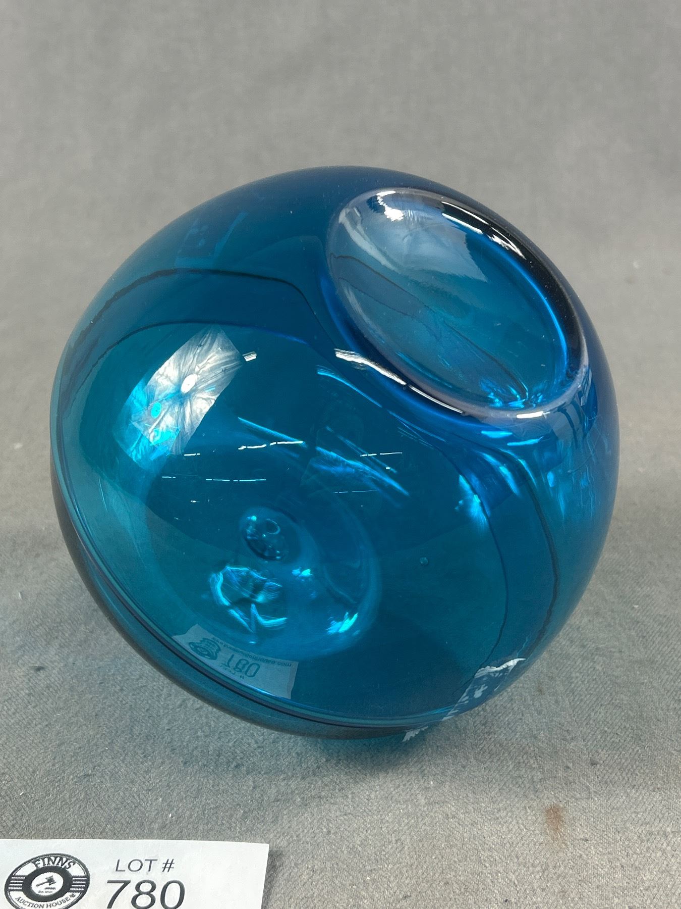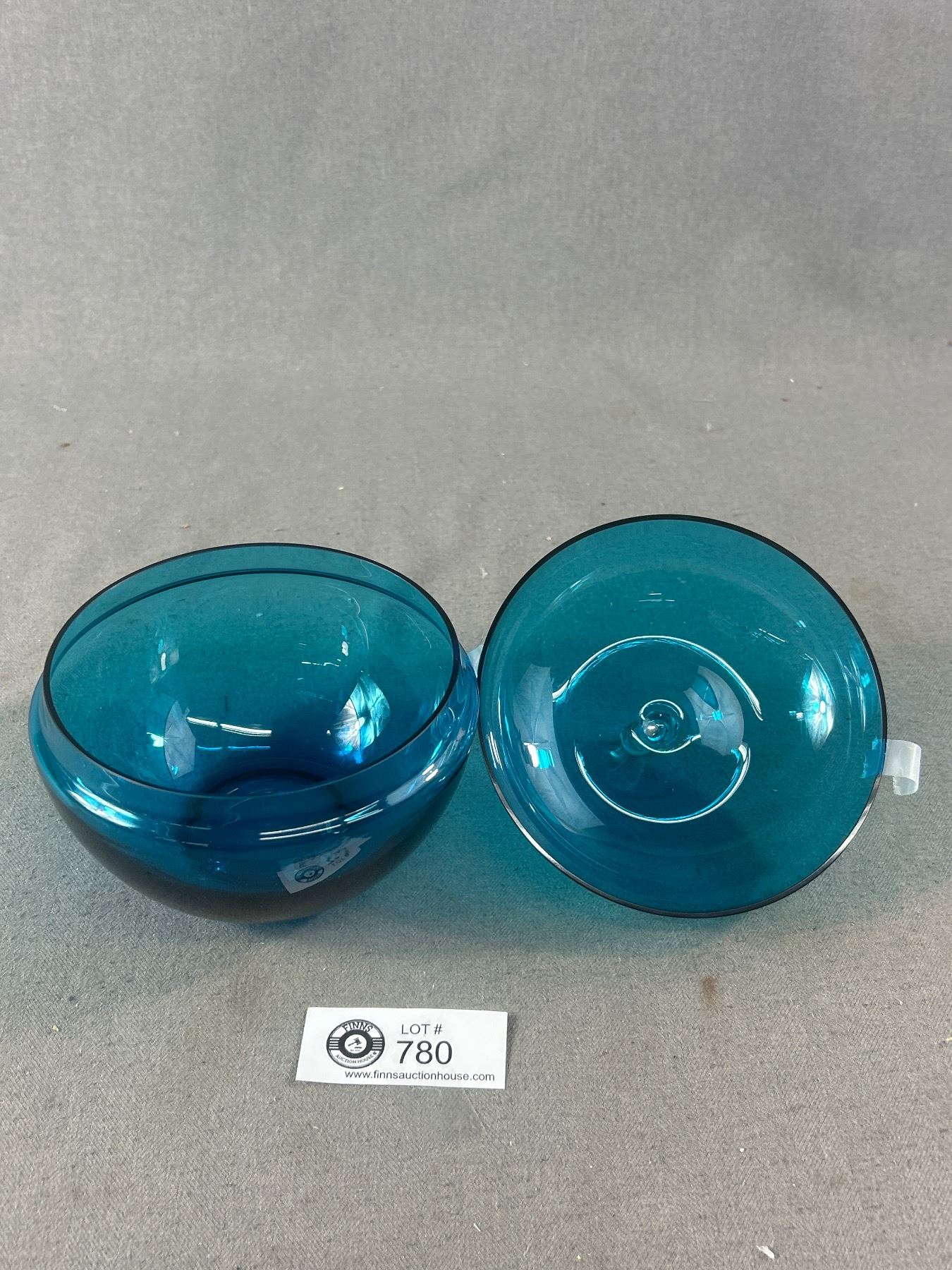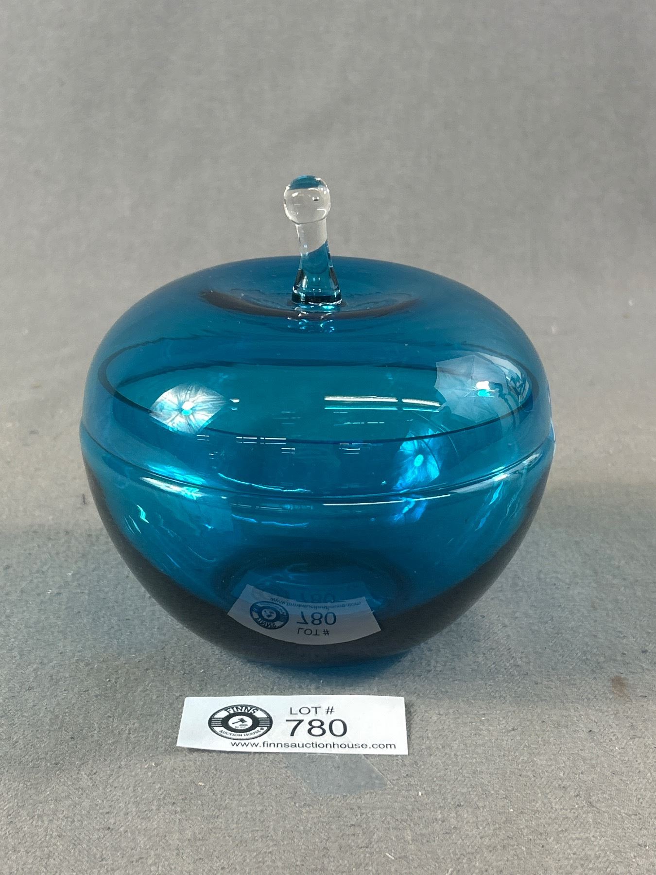 Mid Century Modern Mona Morales Schildt Blue and Clear Glass Lidded Jar