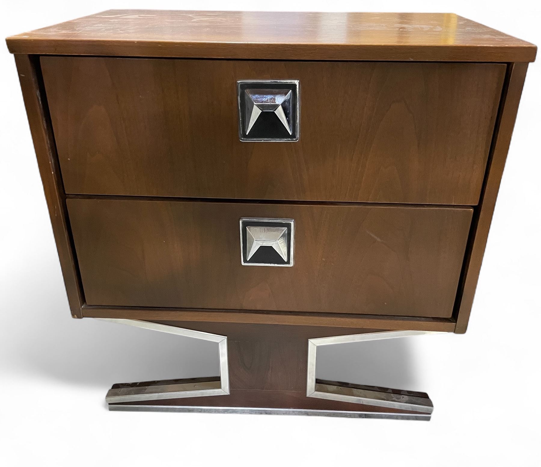 Mid Century Modern Sculptural Walnut Brutalist Style Nightstand, Approx. H24" x W23" x D14"
