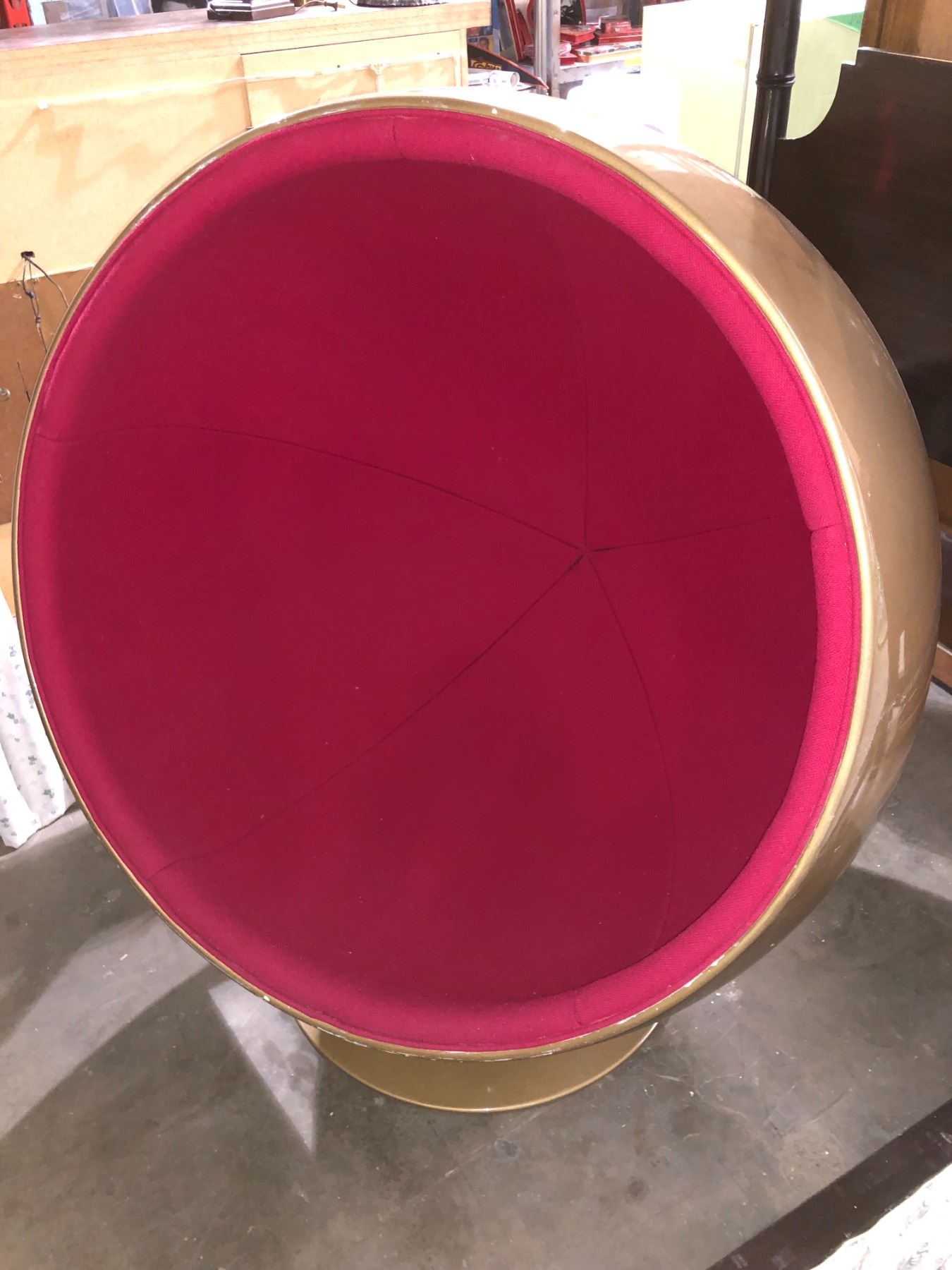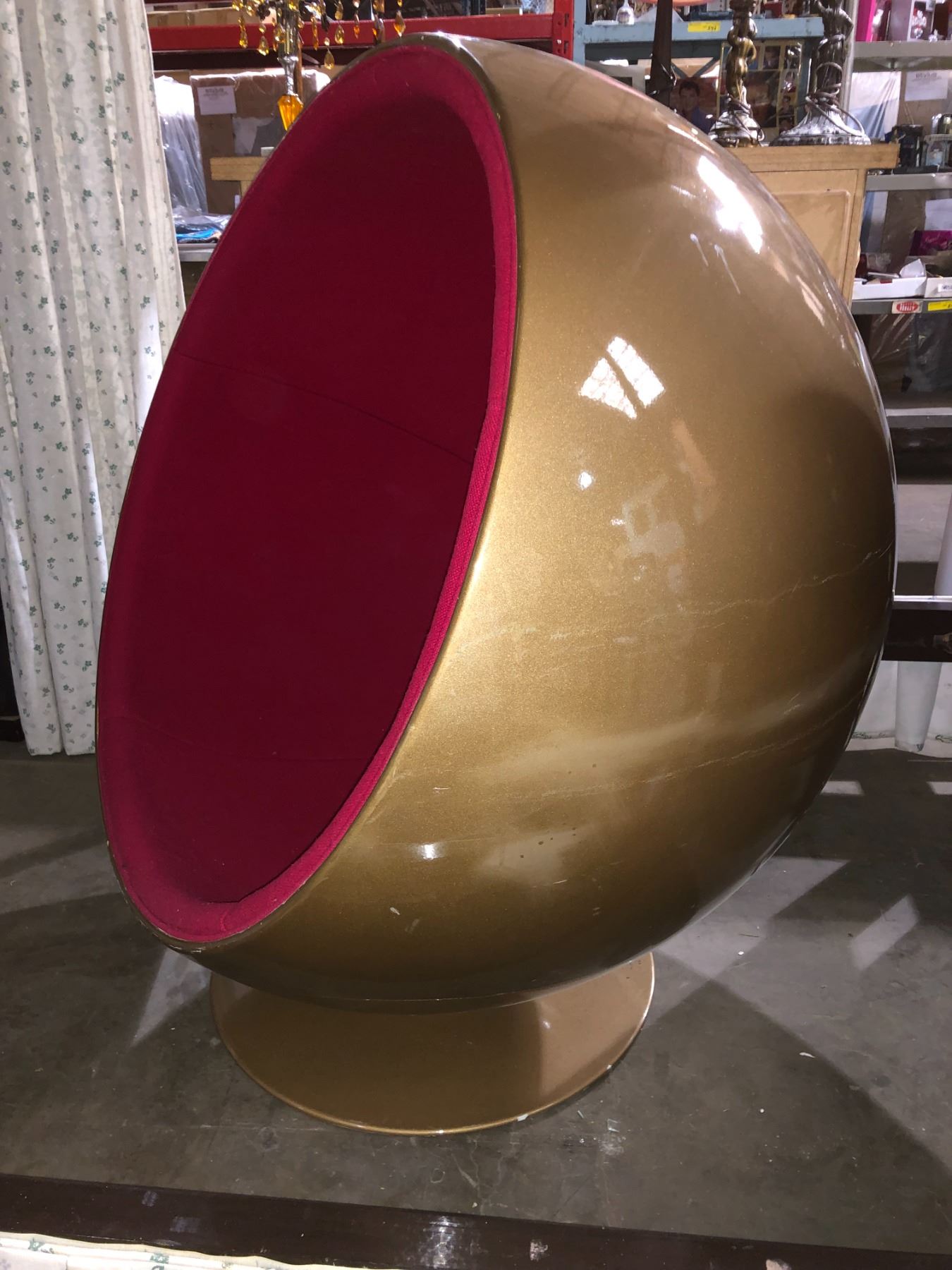 Mid-century modern egg chair - gold finish w/ red upholstered lining - good condition swivels very nicely