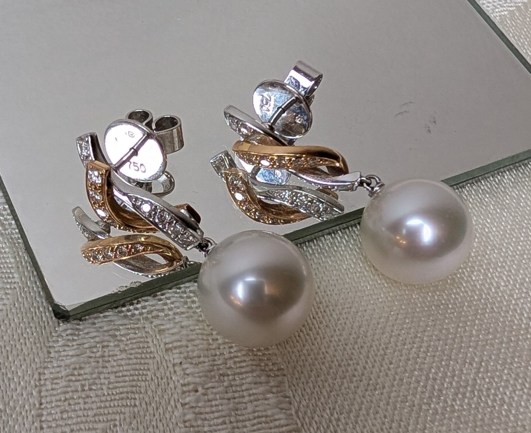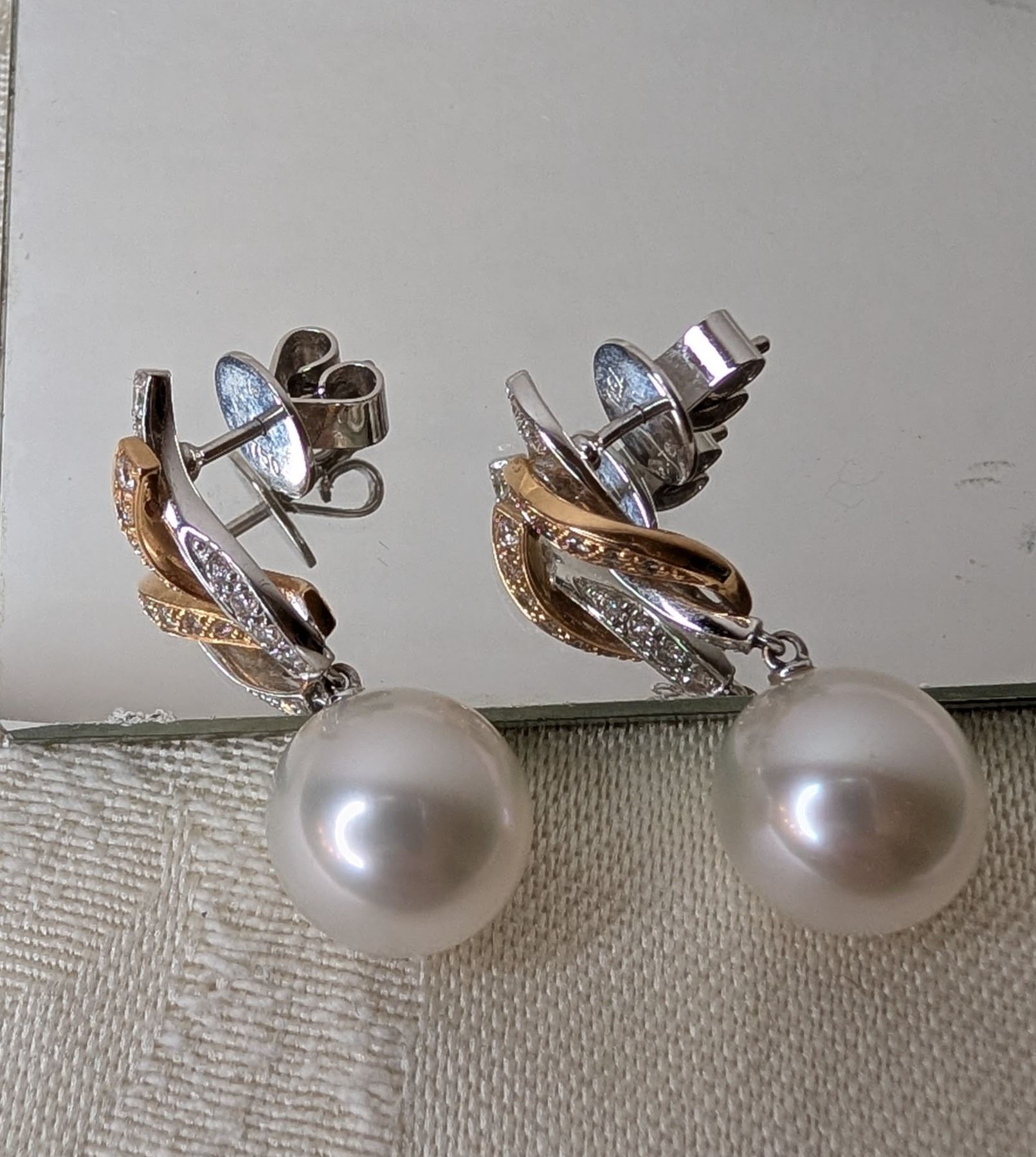 Authentic Mikimoto white pearl drop stud earrings 18k white and rose gold - replacement value $9,800