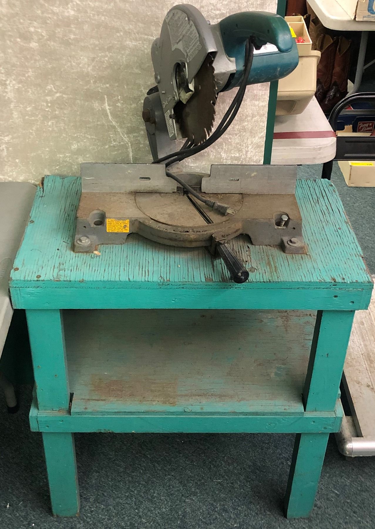 Mikita LS1020 255mm compound mitre-saw with wooden bench table