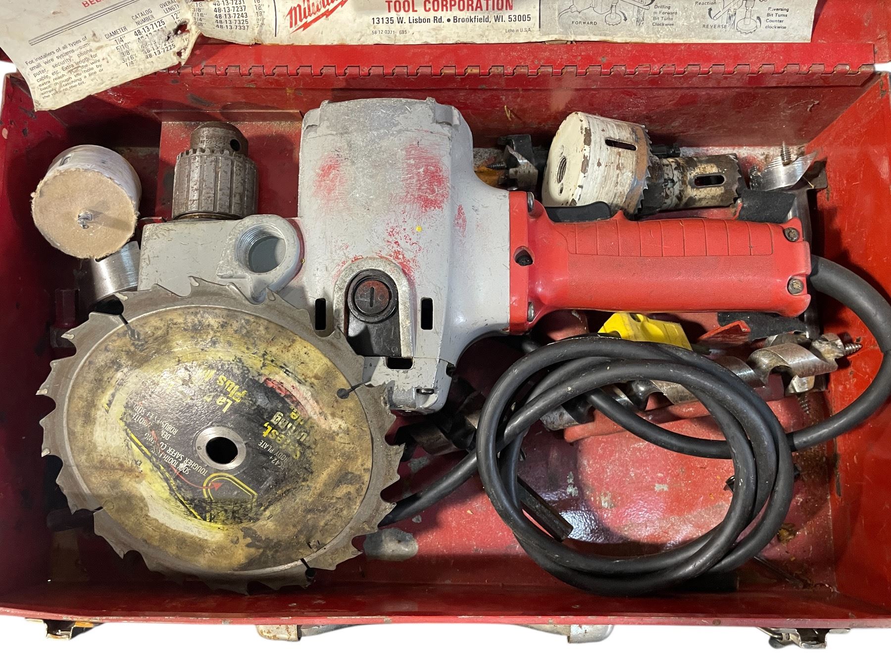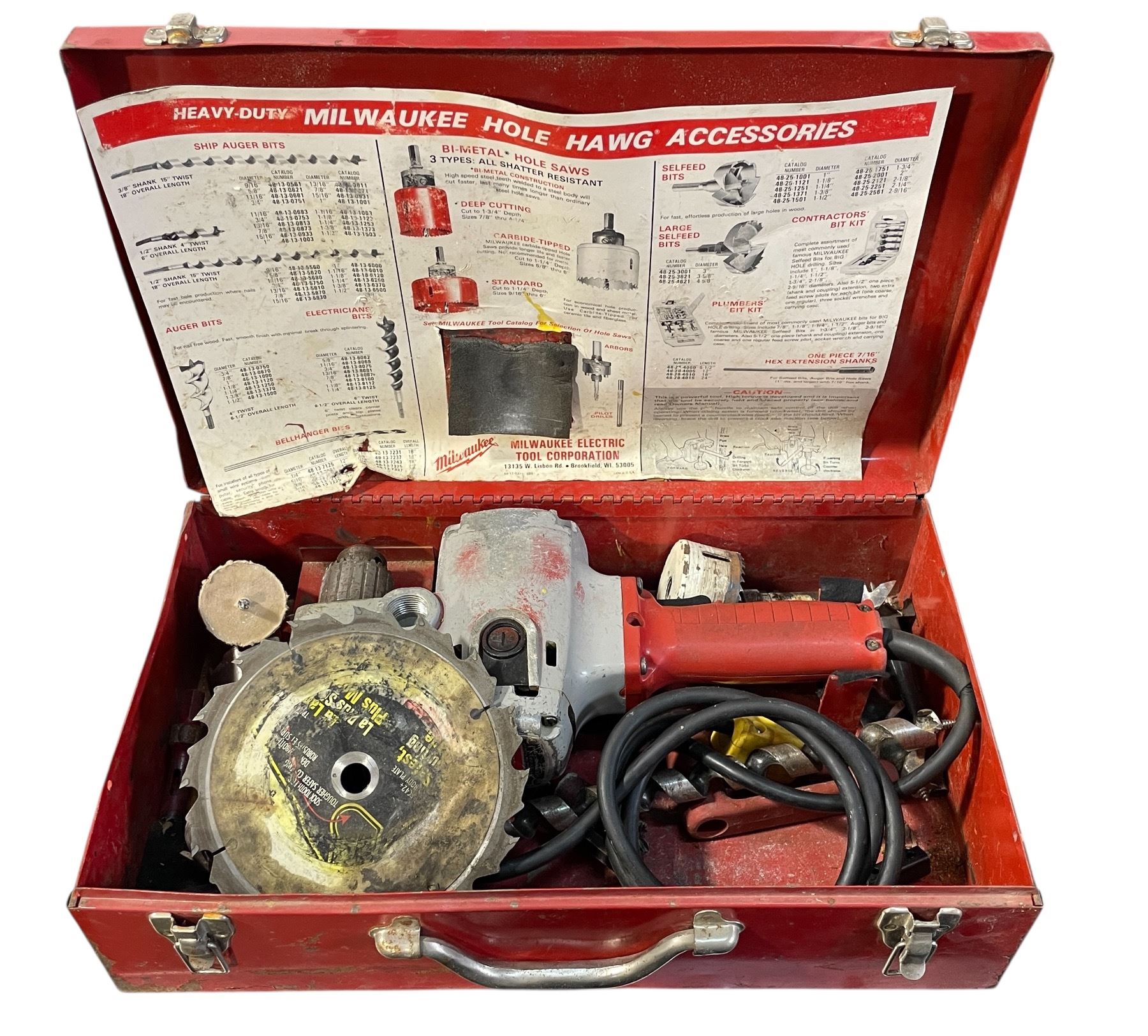 Milwaukee Hole Hawg Heavy-Duty Right Angle Drill Kit – Includes Large Blade, Auger Bits & Cord in Red Metal Case