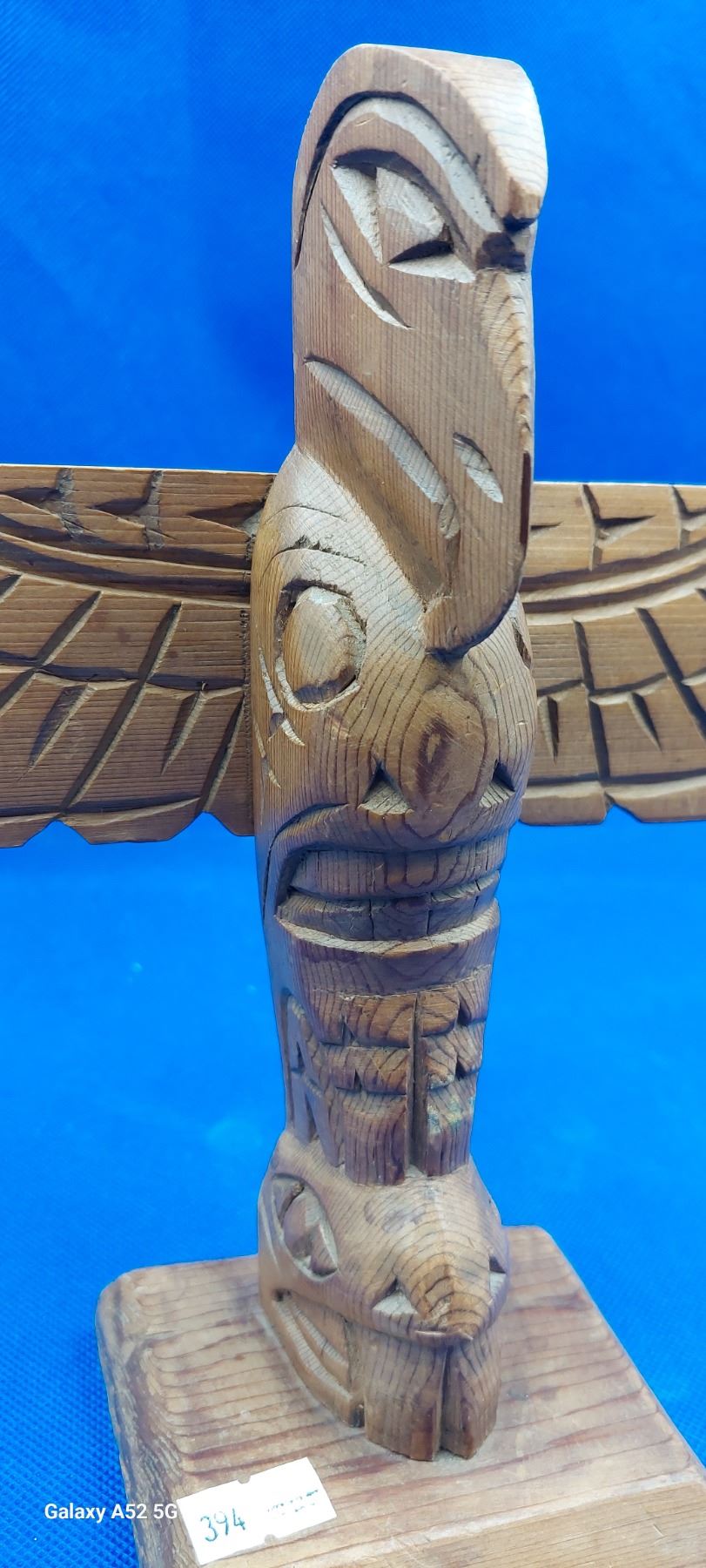 Miniature carved totem 9" signed