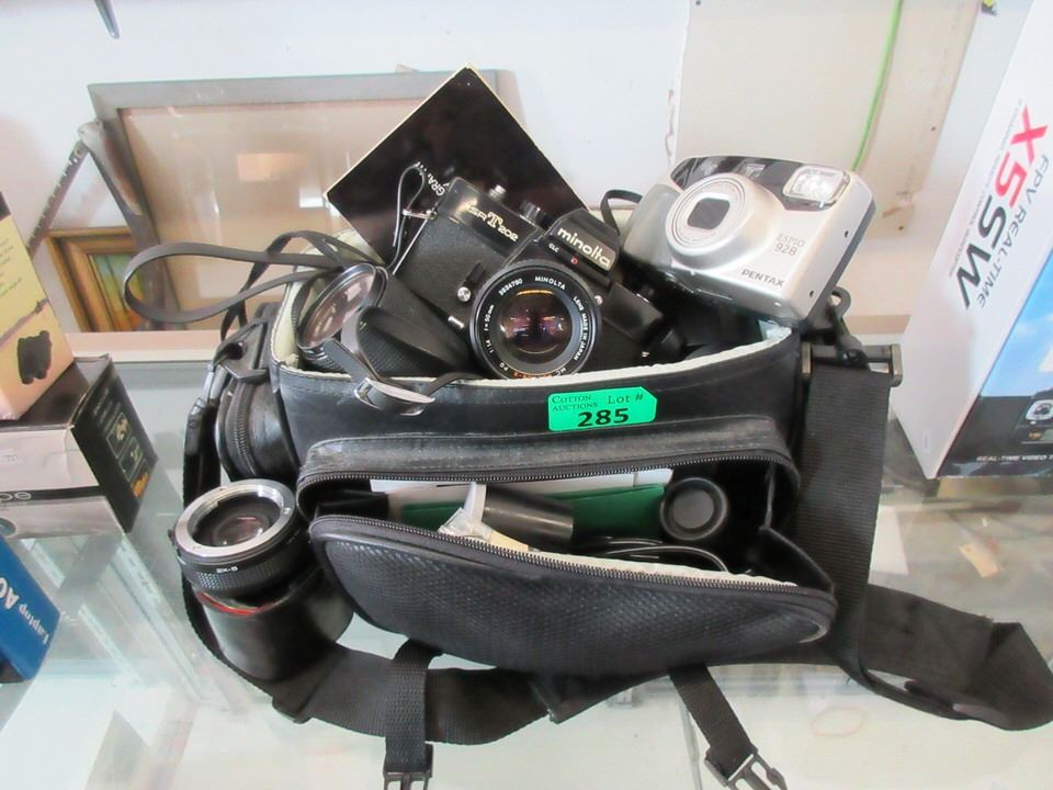 Includes a Pentax ESPIO 928 camera and an assortment of lenses.