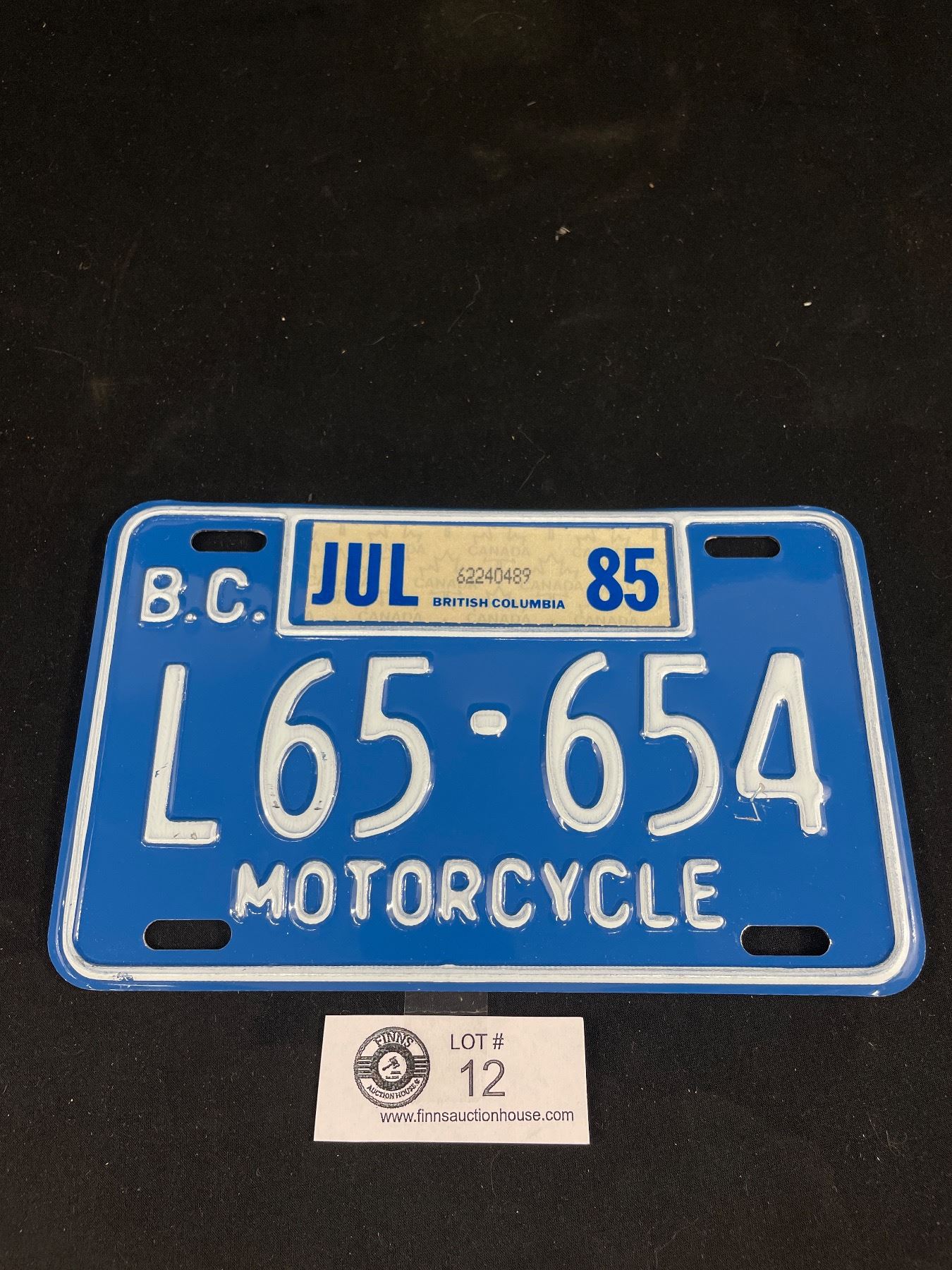 Mint Condition 1985 BC Motorcycle Licnese Plate