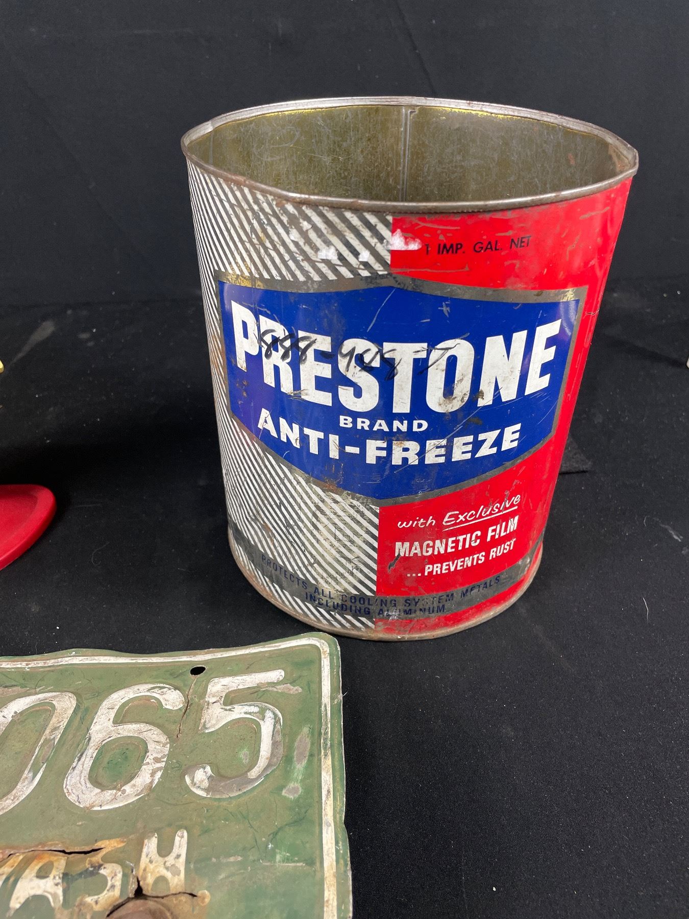 Misc Collectable Lot Old License Plate, Anti Freeze Can etc