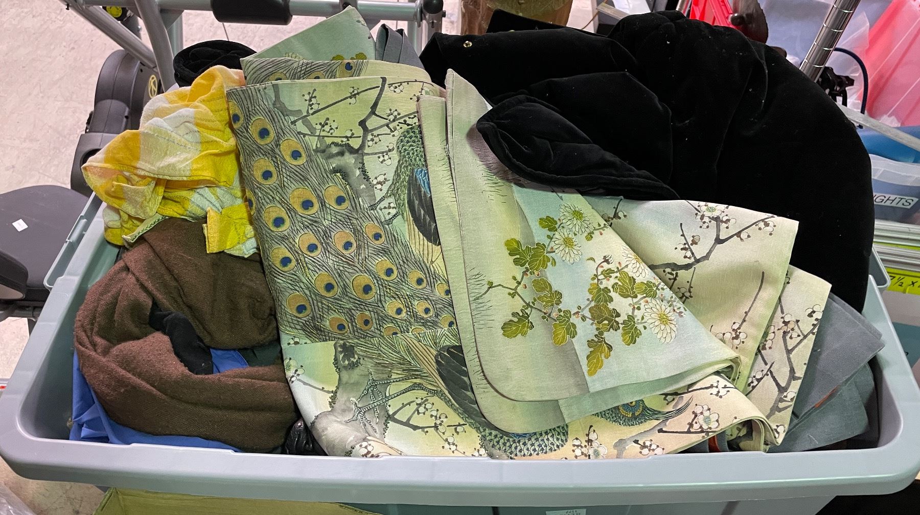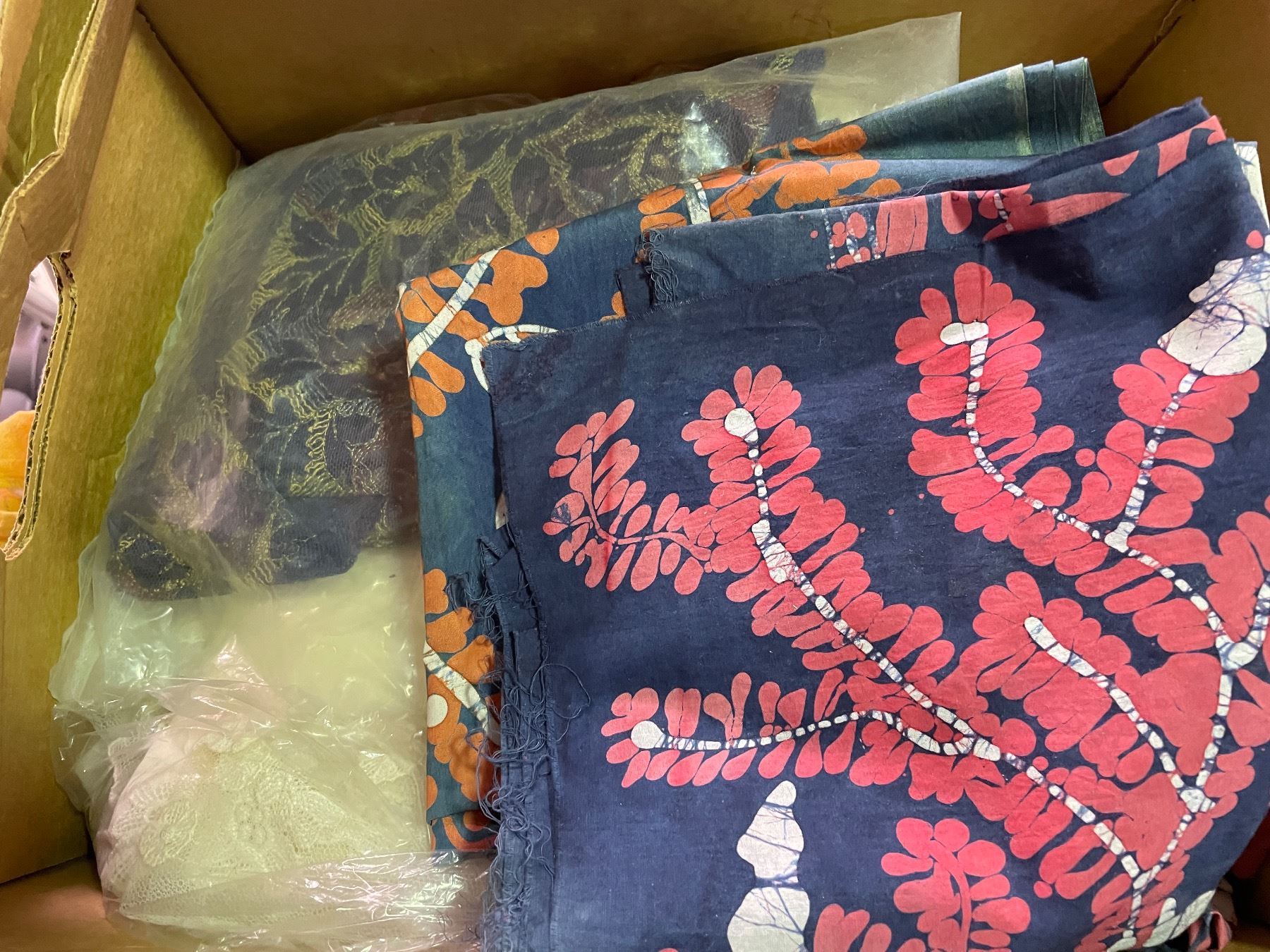 Misc. Group Lot includes Vintage Suitcase/ Fabrics & Misc. Clothes