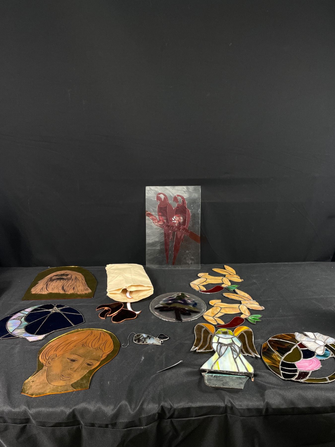 Misc Lot Of Stained Glass Pieces From Hobbyist Estate