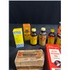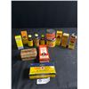 Misc Lot Of Vintage Bottles,Tins & Boxes Of Gun Supplies. Some w/Contents