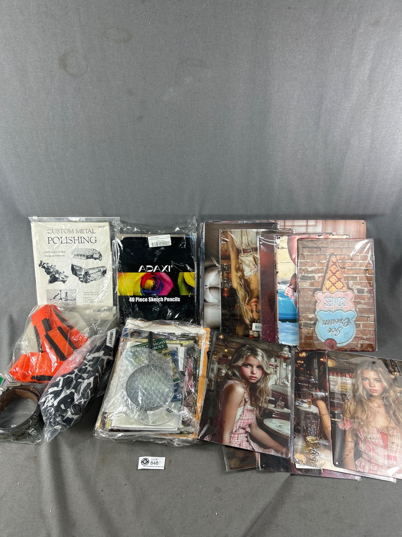 Misc Lot w/ Art Supplies/Sketchbooks, Treasure Books, Michael Khors Belt, Umbrella, Etc