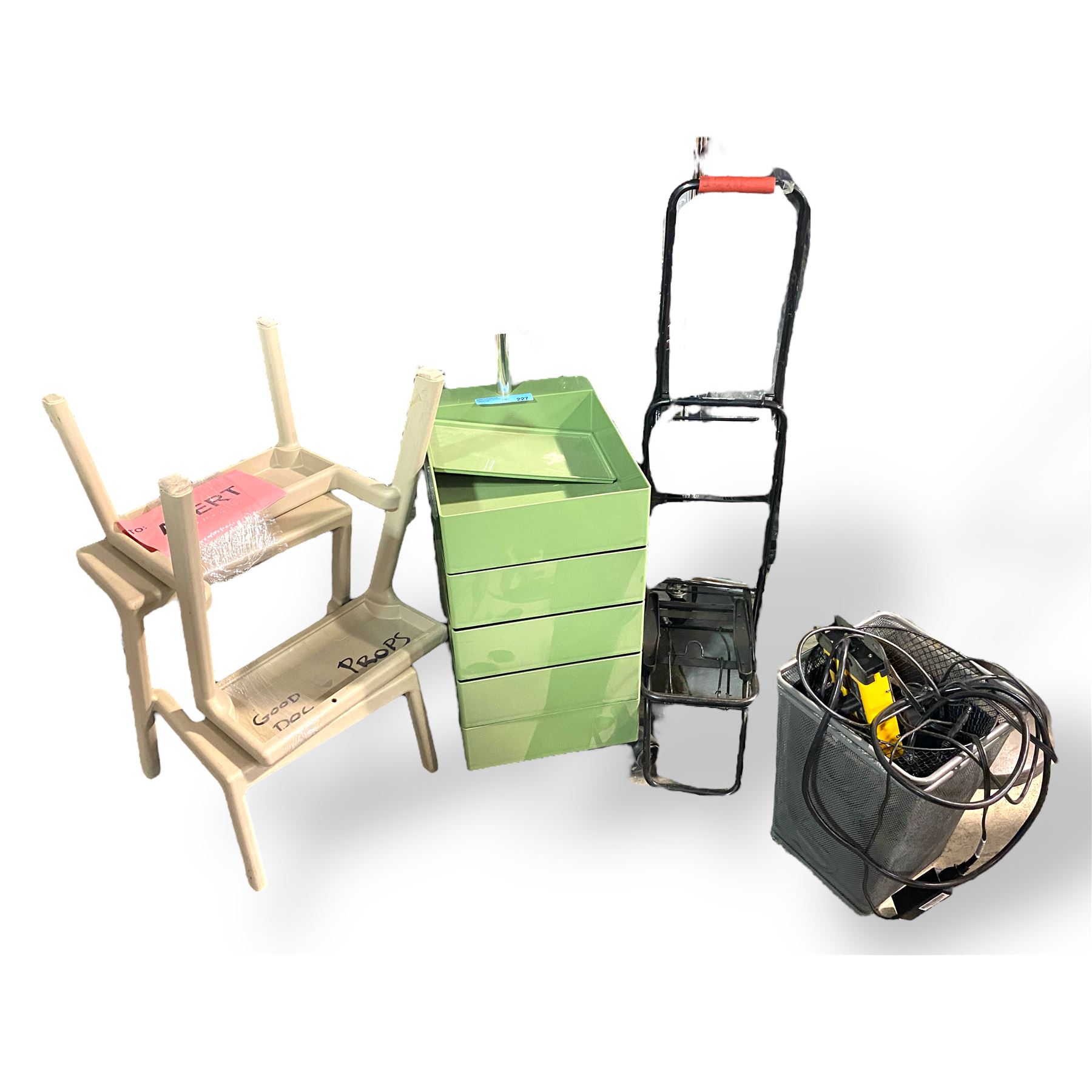 Misc. Movie Set Dec "Alert" Accessories - includes Step Ladders/ Green Cart/Office Chair & More