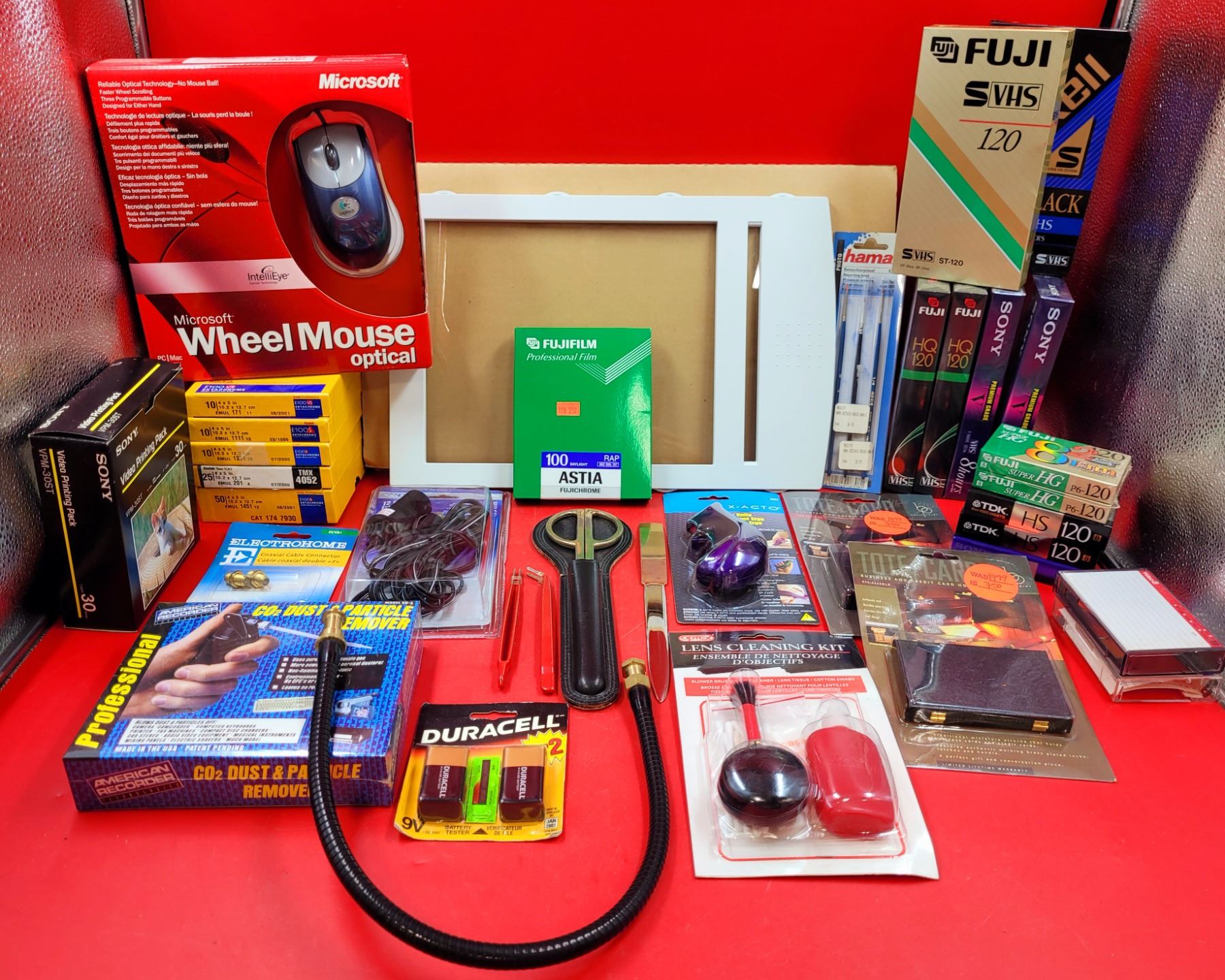 Miscellaneous Lot w/ Microsoft Wheel Mouse, Fujifilm Professional Film, VHSs, Dust Remover, & More
