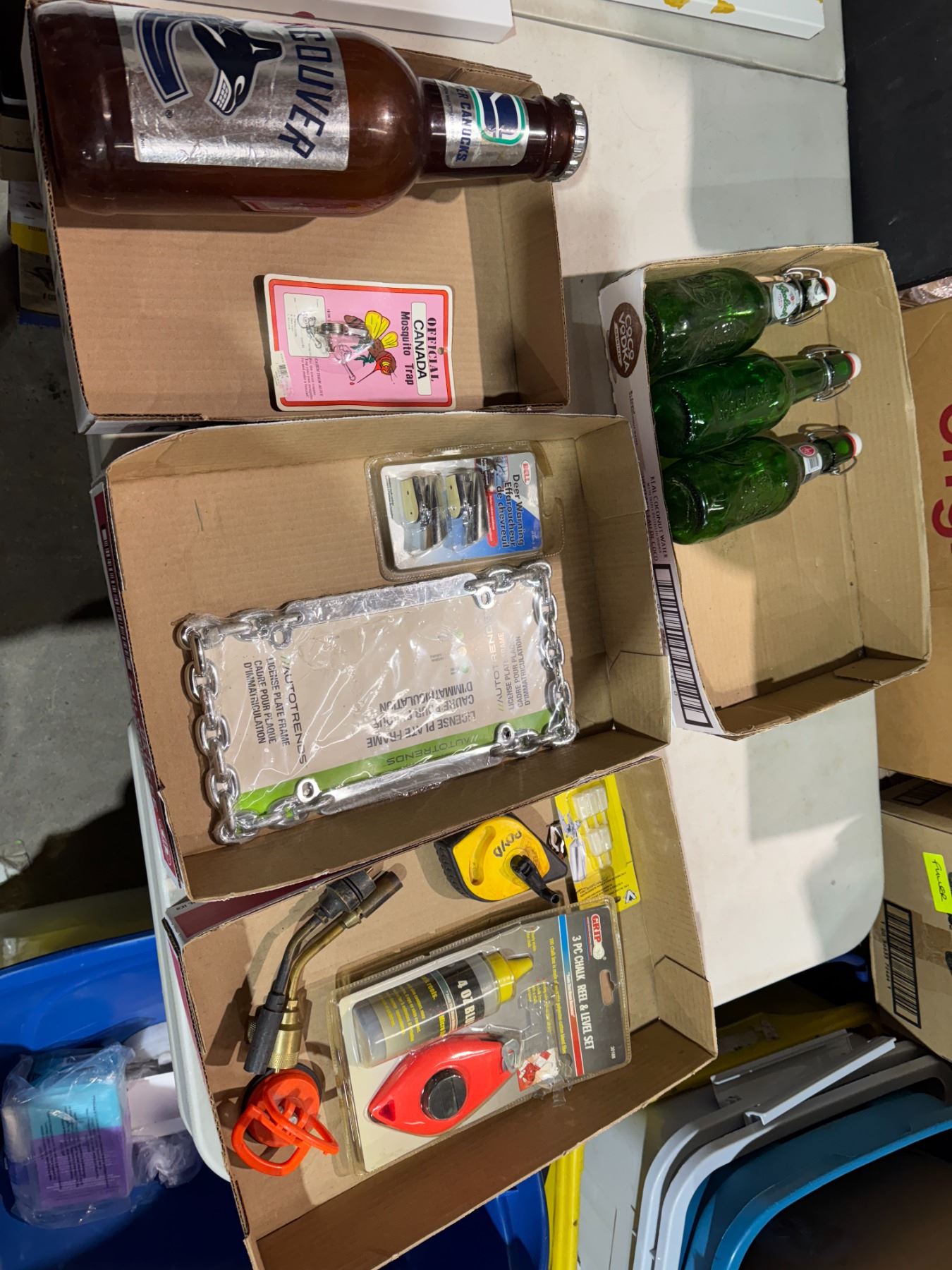 Miscellaneous lot shock, lines, torch tips, license plate, cover, deer, warning, item, bottles, etc.