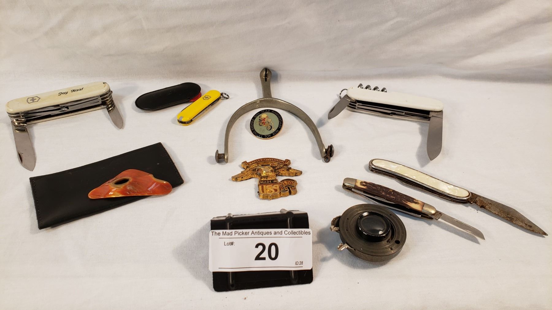 Mix Of Pocket Knives, Harley Davidson Medal, Etc..